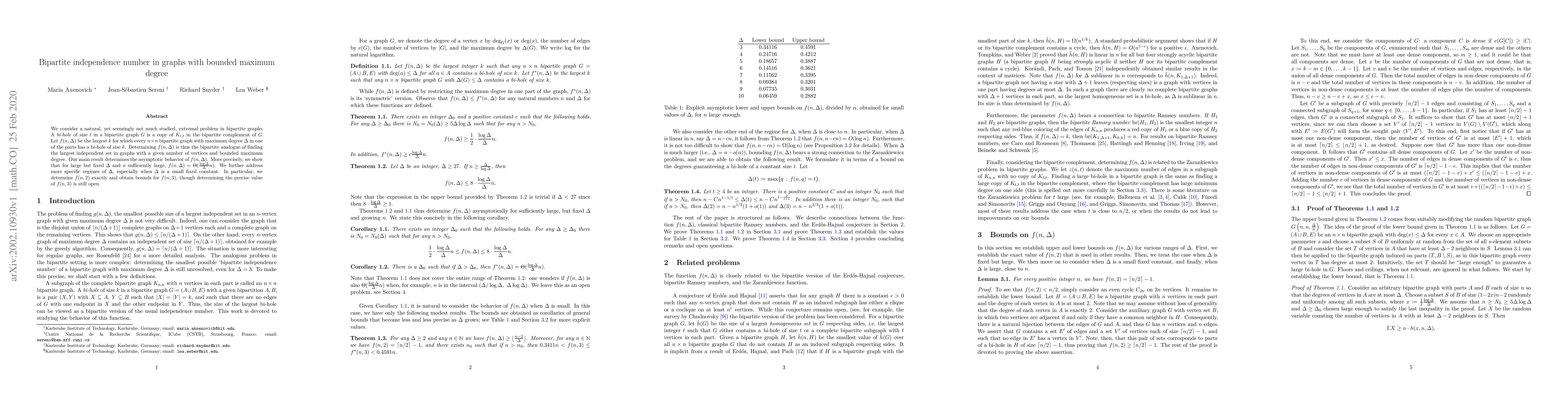 This research paper investigates the asymptotic behavior of the bipartite independence number in graphs with bounded maximum degree, finding that it grows like \Theta(\frac{\ log \ Delta}{\\Delta} n) for large n and fixed \Delta.