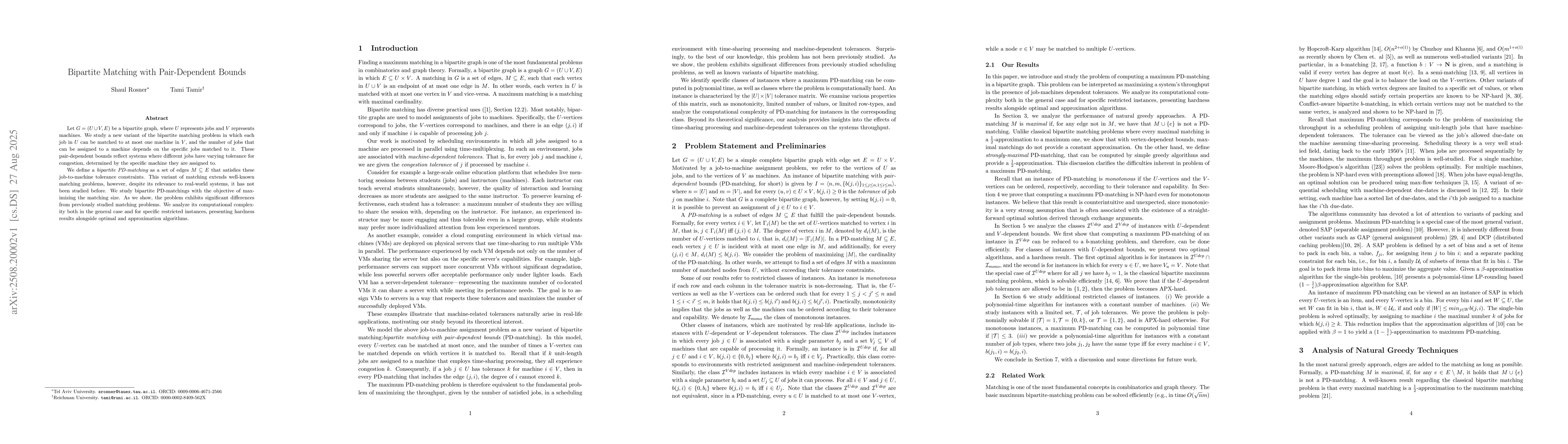 Let $G=(U \cup V, E)$ be a bipartite graph, where $U$ represents jobs and $V$ represents machines. We study a new variant of the bipartite matching problem in which each job in $U$ can be matched to at most one machine in $V$, and the number of jobs that can be assigned to a machine depends on the specific jobs matched to it. These pair-dependent bounds reflect systems where different jobs have varying tolerance for congestion, determined by the specific machine they are assigned to. We define a bipartite PD-matching as a set of edges $M \subseteq E$ that satisfies these job-to-machine tolerance constraints. This variant of matching extends well-known matching problems, however, despite its relevance to real-world systems, it has not been studied before. We study bipartite PD-matchings with the objective of maximizing the matching size. As we show, the problem exhibits significant differences from previously studied matching problems. We analyze its computational complexity both in the general case and for specific restricted instances, presenting hardness results alongside optimal and approximation algorithms.
