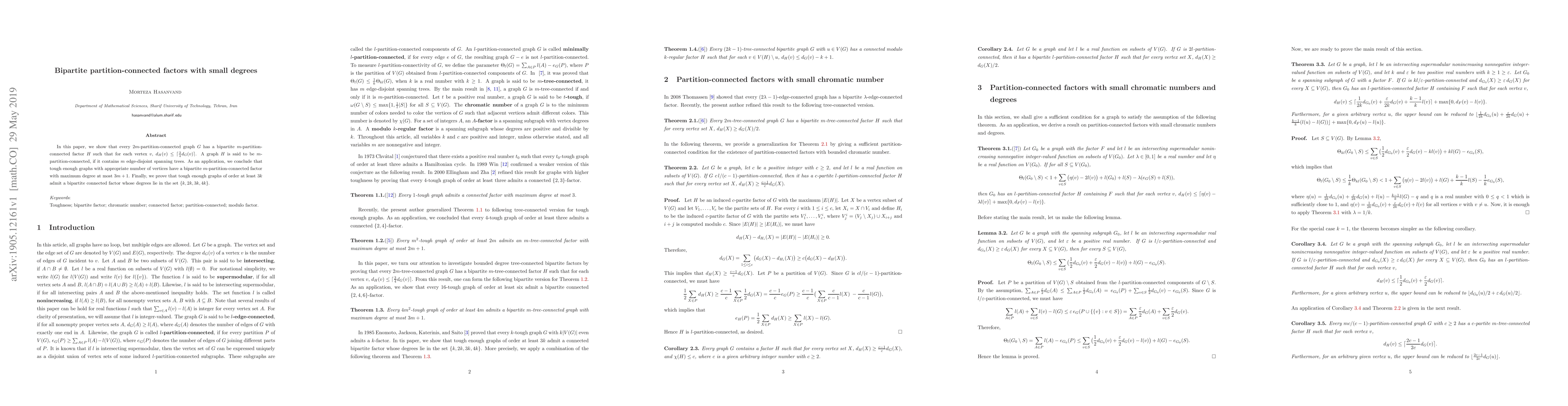 In this paper, we show that every $2m$-partition-connected graph $G$ has a bipartite $m$-partition-connected factor $H$ such that for each vertex $v$, $d_H(v)\le \lceil \frac{3}{4}d_G(v)\rceil$. A graph $H$ is said to be $m$-partition-connected, if it contains $m$ edge-disjoint spanning trees. As an application, we conclude that tough enough graphs with appropriate number of vertices have a bipartite $m$-partition-connected factor with maximum degree at most $3m+1$. Finally, we prove that tough enough graphs of order at least $3k$ admit a bipartite connected factor whose degrees lie in the set $\{k,2k,3k,4k\}$.