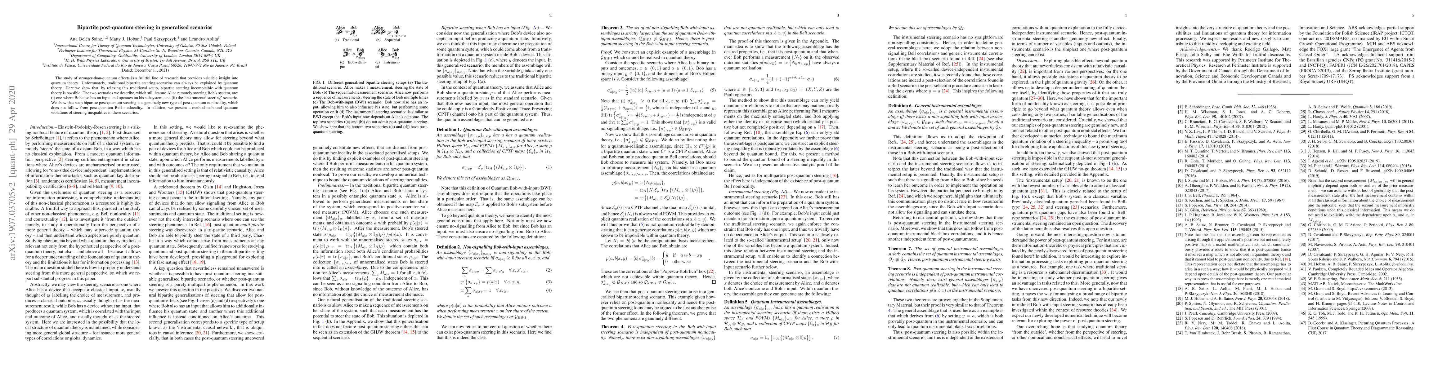 This paper explores new forms of bipartite post-quantum steering beyond traditional quantum explanations, introducing scenarios where Alice can steer Bob's system even when Bob has inputs and operates on his subsystem. It identifies these as genuinely new types of post-quantum nonlocality, distinct from post-quantum Bell nonlocality, and proposes methods to bound quantum violations in these settings.