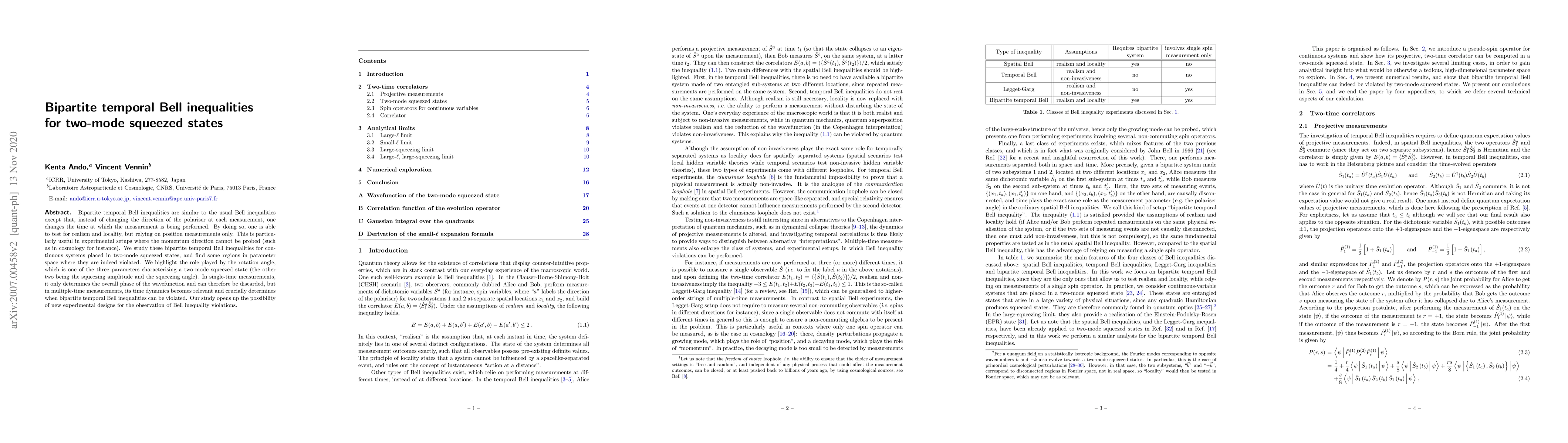 This paper investigates bipartite temporal Bell inequalities for continuous systems in two-mode squeezed states, finding violations in certain parameter regions. The study emphasizes the role of the rotation angle, which, while irrelevant in single-time measurements, determines the timing dynamics crucial for observing these violations in multiple-time measurements.