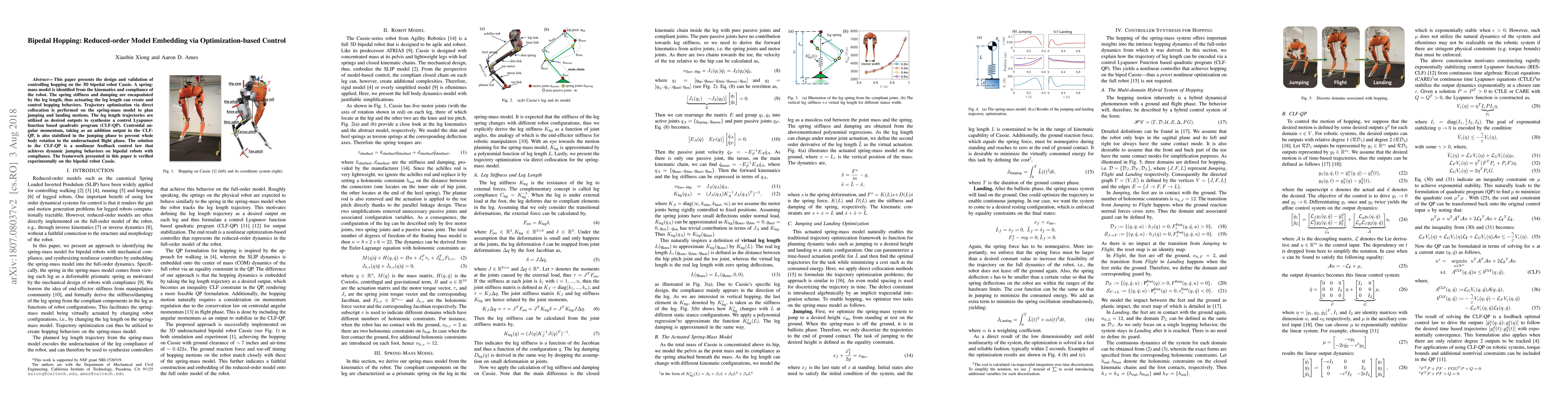 This paper develops an optimization-based control framework for dynamic hopping in the bipedal robot Cassie, using a spring-mass model and a control Lyapunov function. Experimental validation demonstrates successful dynamic jumping and stabilization of centroidal angular momentum.