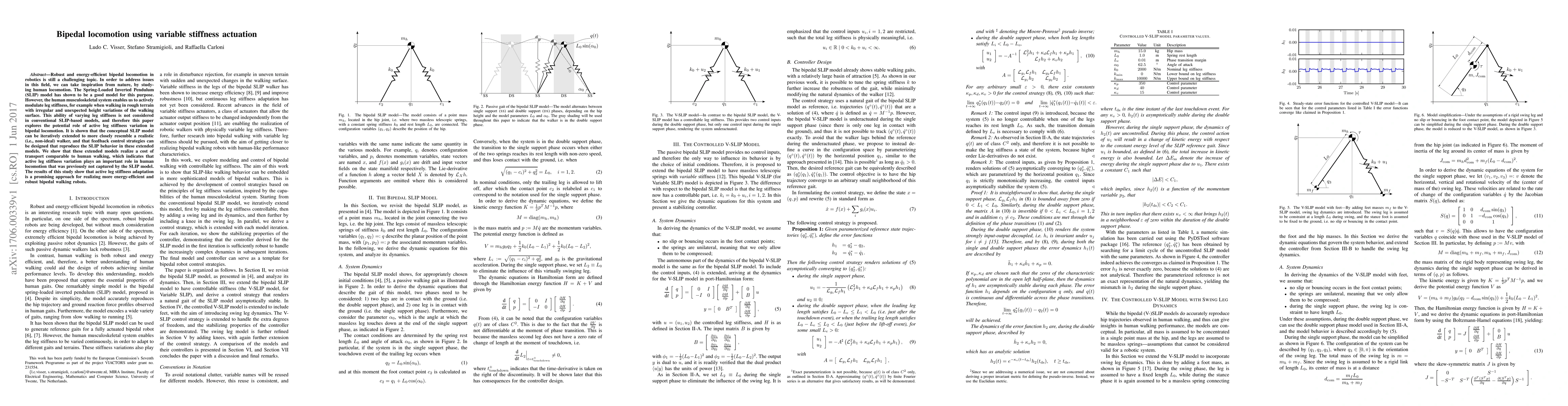 This paper investigates the role of active leg stiffness variation in bipedal locomotion, proposing that it enhances energy efficiency and robustness. It extends the Spring-Loaded Inverted Pendulum model to incorporate dynamic stiffness modulation, demonstrating that such adaptation can achieve a transport cost comparable to human walking.