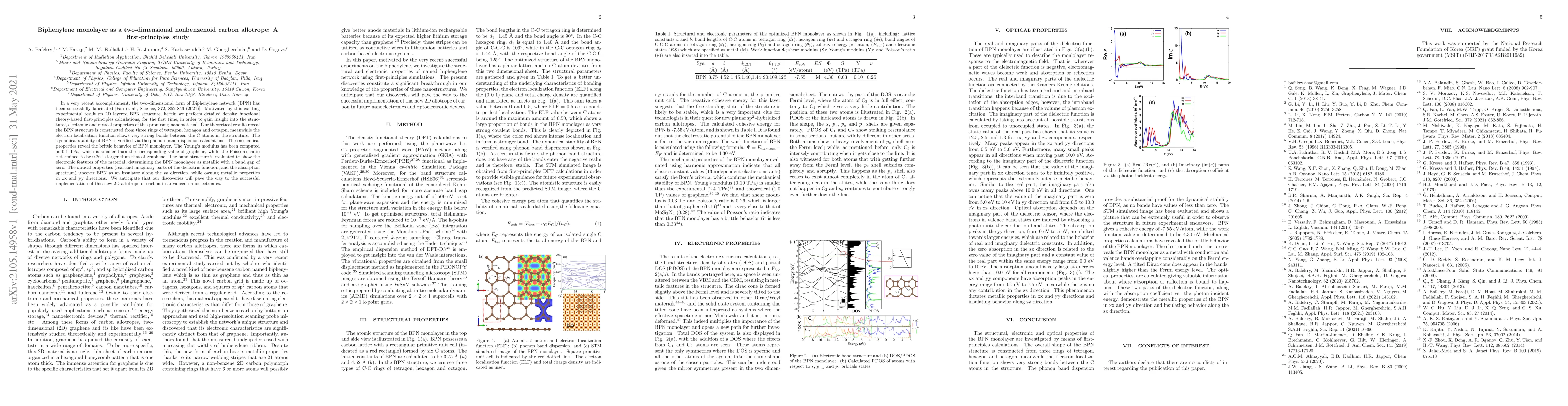 This paper investigates the structural, electronic, and optical properties of a newly fabricated biphenylene monolayer using density functional theory. The study finds that the biphenylene network (BPN) is mechanically brittle with a Young's modulus of 0.1 TPa and a metallic band structure with zero band gap, indicating potential for advanced nanoelectronics applications.