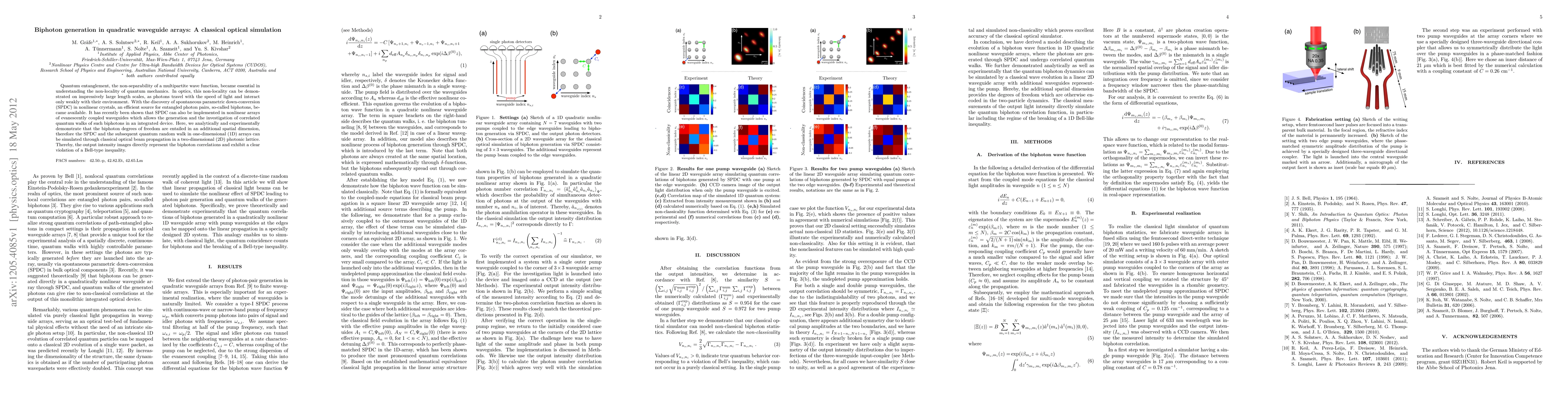 Researchers simulate biphoton generation in 2D photonic lattices to demonstrate entanglement correlations, finding a clear violation of Bell-type inequality through classical optical beam propagation.