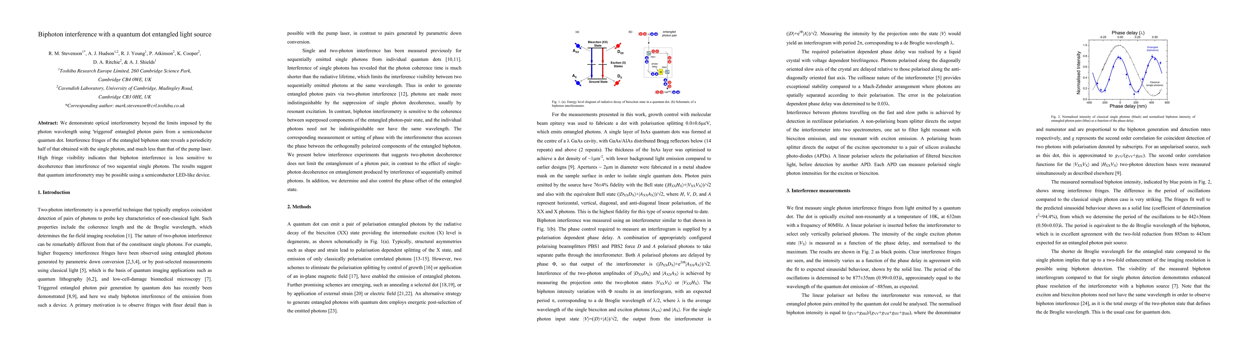 We demonstrate optical interferometry beyond the limits imposed by the photon wavelength using 'triggered' entangled photon pairs from a semiconductor quantum dot. Interference fringes of the entangled biphoton state reveals a periodicity half of that obtained with the single photon, and much less than that of the pump laser. High fringe visibility indicates that biphoton interference is less sensitive to decoherence than interference of two sequential single photons. The results suggest that quantum interferometry may be possible using a semiconductor LED-like device.