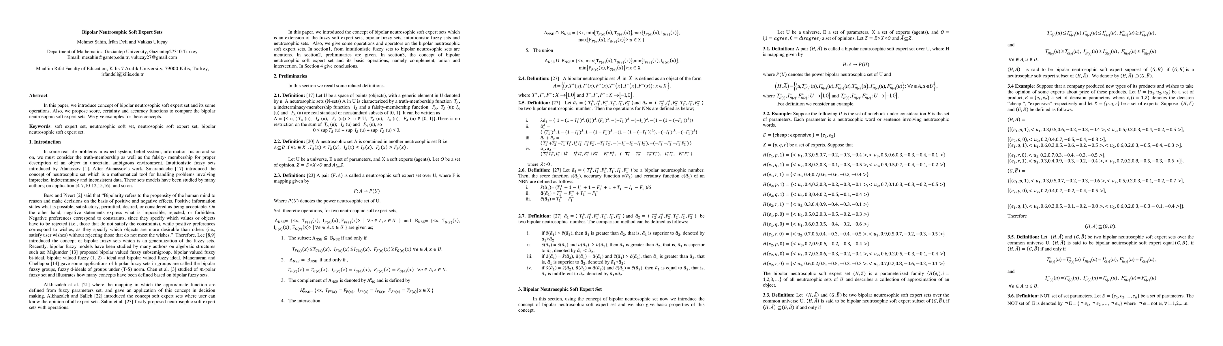 In this paper, we define concept of bipolar neutrosophic soft expert set. Also, its basic operations, namely complement, union and intersection. We give examples for these concepts.