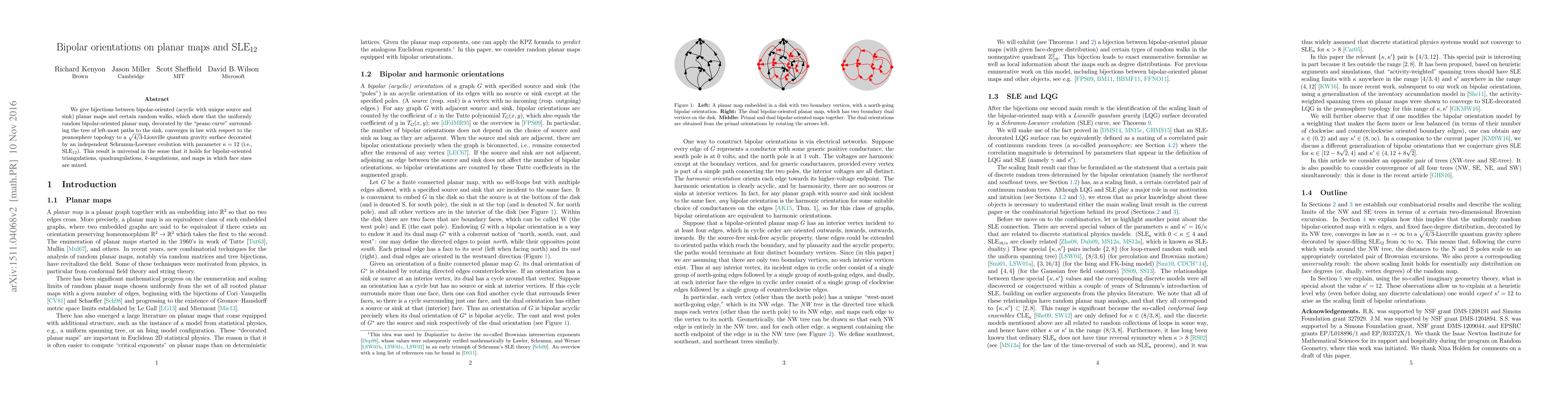 This paper establishes a bijection between bipolar-oriented planar maps and specific random walks, demonstrating that these maps, when decorated by a "peano curve," converge to a $\sqrt{4/3}$-Liouville quantum gravity surface with an independent SLE$_{12}$ trace, universally across various map types.