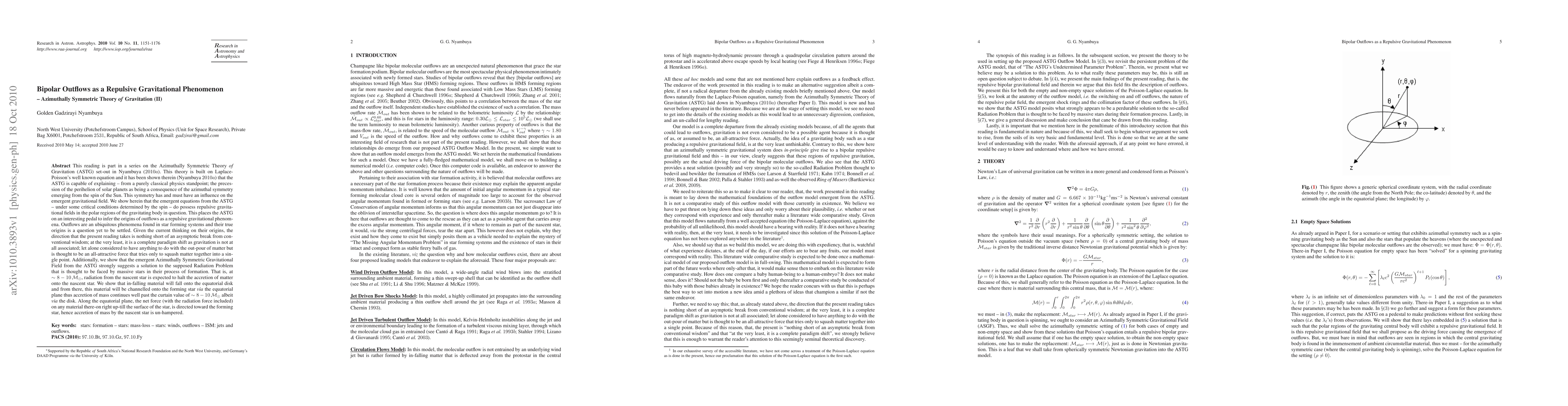 The Azimuthally Symmetric Theory of Gravitation (ASTG) and its application to demonstrate repulsive gravitational fields under specific conditions, providing a novel explanation for bipolar outflows.