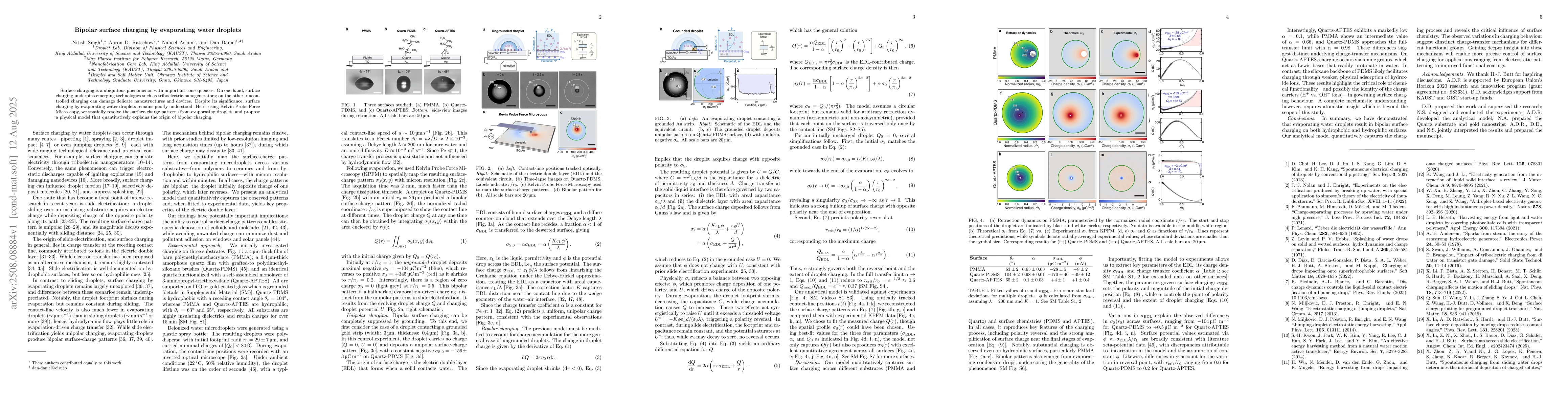 This research uses Kelvin Probe Force Microscopy to reveal detailed surface-charge patterns from evaporating water droplets, proposing a model that explains bipolar charging origins.