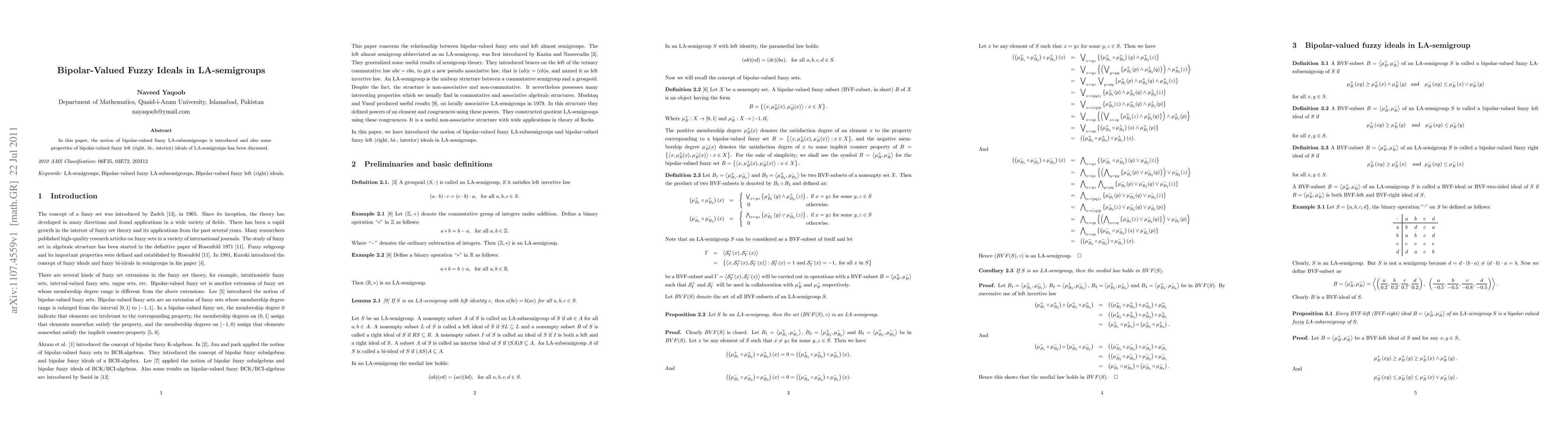 This paper introduces bipolar-valued fuzzy LA-subsemigroups and explores properties of bipolar-valued fuzzy left, right, bi-, and interior ideals within LA-semigroups. The study aims to deepen the understanding of fuzzy ideal structures in algebraic systems.