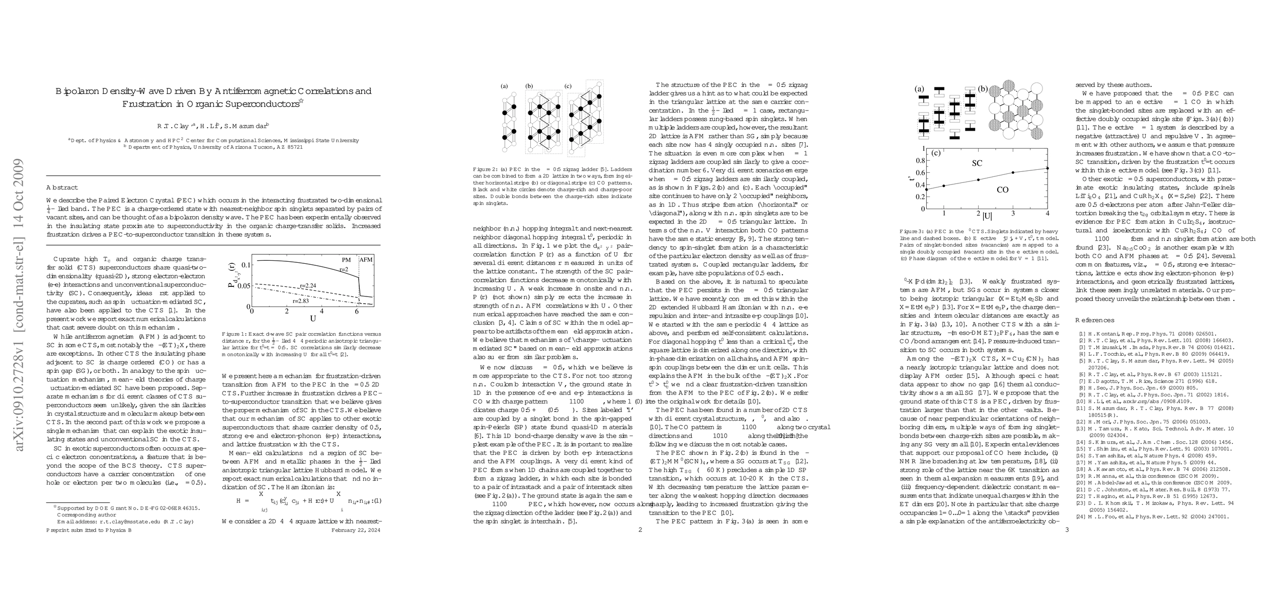 This paper investigates the Paired Electron Crystal (PEC) in organic superconductors, revealing a charge-ordered bipolaron density wave driven by antiferromagnetic correlations and frustration in a 2D 1/4-filled band. Experimental observations show that increased frustration leads to a transition from PEC to superconductivity.