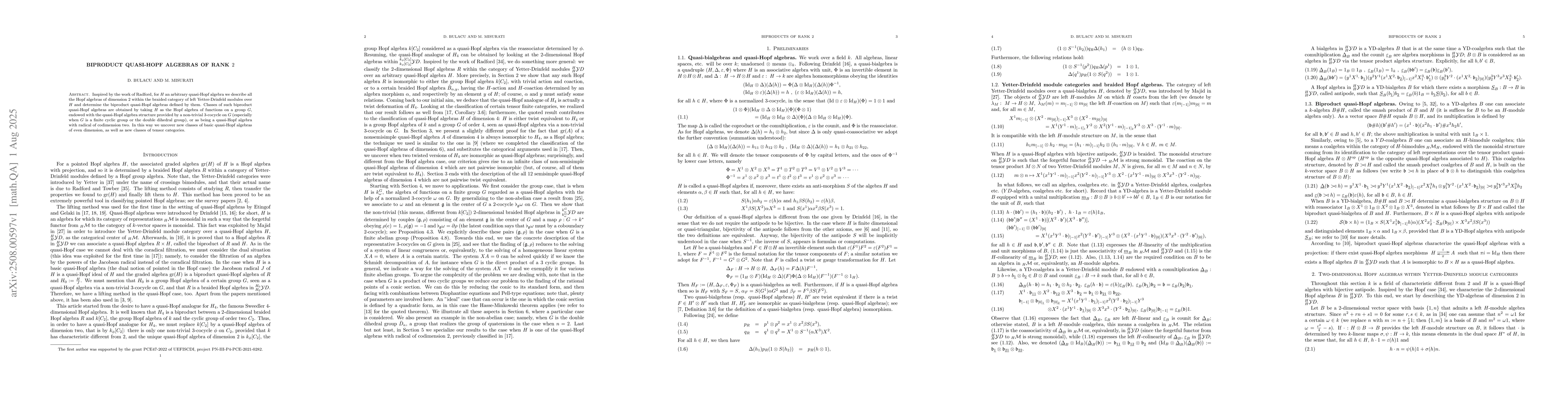 Inspired by the work of Radford, for $H$ an arbitrary quasi-Hopf algebra we describe all the Hopf algebras of dimension $2$ within the braided category of left Yetter-Drinfeld modules over $H$ and determine the biproduct quasi-Hopf algebras defined by them. Classes of such biproduct quasi-Hopf algebras are obtained by taking $H$ as the Hopf algebra of functions on a group $G$, endowed with the quasi-Hopf algebra structure provided by a non-trivial $3$-cocycle on $G$ (especially when $G$ is a finite cyclic group or the double dihedral group), or as being a quasi-Hopf algebra with radical of codimension two. In this way we uncover new classes of basic quasi-Hopf algebras of even dimension, as well as new classes of tensor categories.