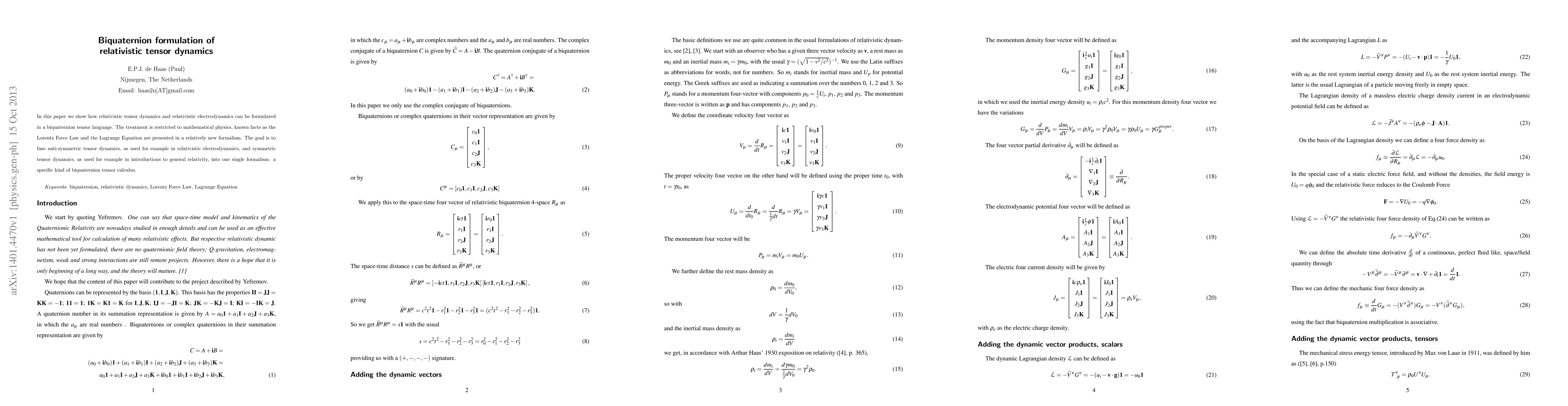 Researchers developed a new formalism for relativistic tensor dynamics using biquaternion tensors, merging anti-symmetric and symmetric tensor dynamics into one framework.