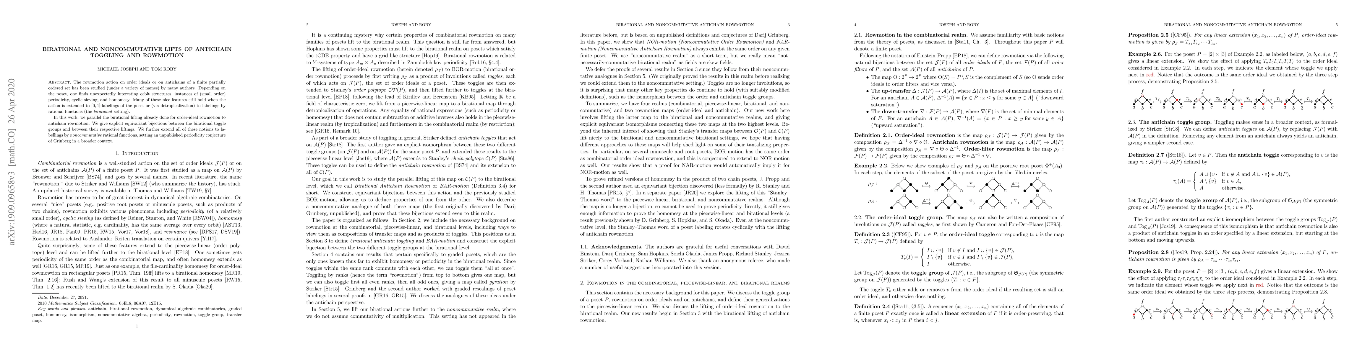This paper extends the study of rowmotion on antichains of partially ordered sets to birational and noncommutative settings, providing explicit equivariant bijections and situating Grinberg's periodicity conjecture within a broader framework. It investigates the birational lifting of antichain toggling and its noncommutative analogs.