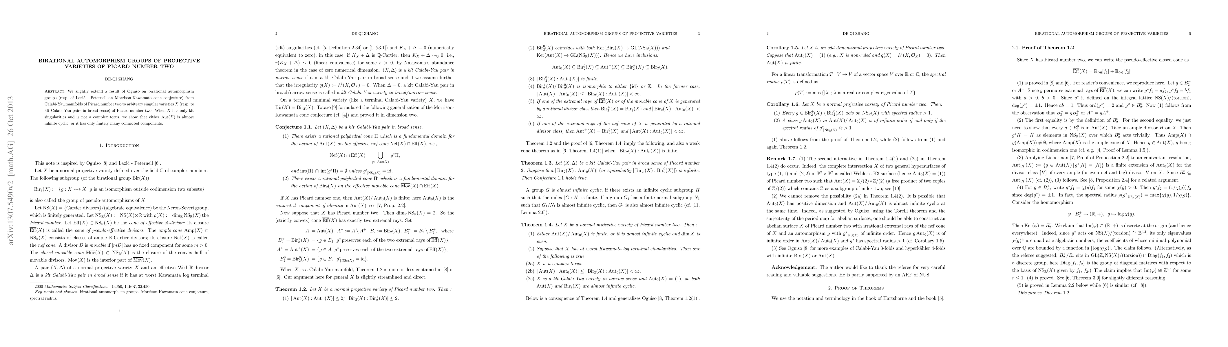 We slightly extend a result of Oguiso on birational or automorphism groups (resp. of Lazi\'c - Peternell on Morrison-Kawamata cone conjecture) from Calabi-Yau manifolds of Picard number two to arbitrary singular varieties X (resp. to klt Calabi-Yau pairs in broad sense) of Picard number two. When X has only klt singularities and is not a complex torus, we show that either Aut(X) is almost cyclic, or it has only finitely many connected components.