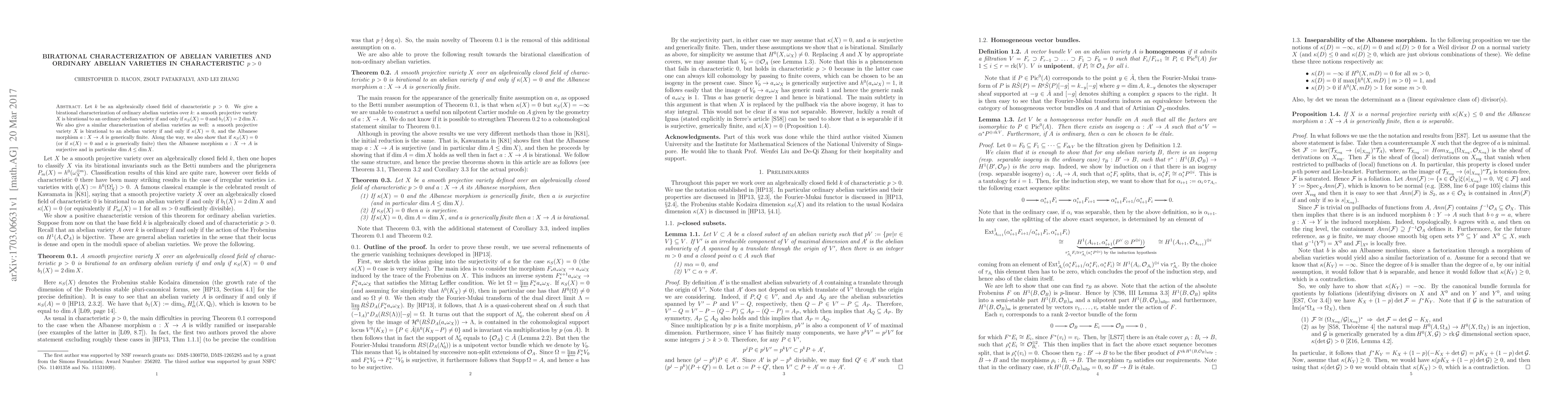 This paper provides birational characterizations of ordinary abelian and general abelian varieties over an algebraically closed field of positive characteristic. It concludes that a smooth projective variety is birational to an ordinary abelian variety if its Kodaira dimension is zero and its first Betti number equals twice its dimension. For general abelian varieties, it requires zero Kodaira dimension and a generically finite Albanese morphism.