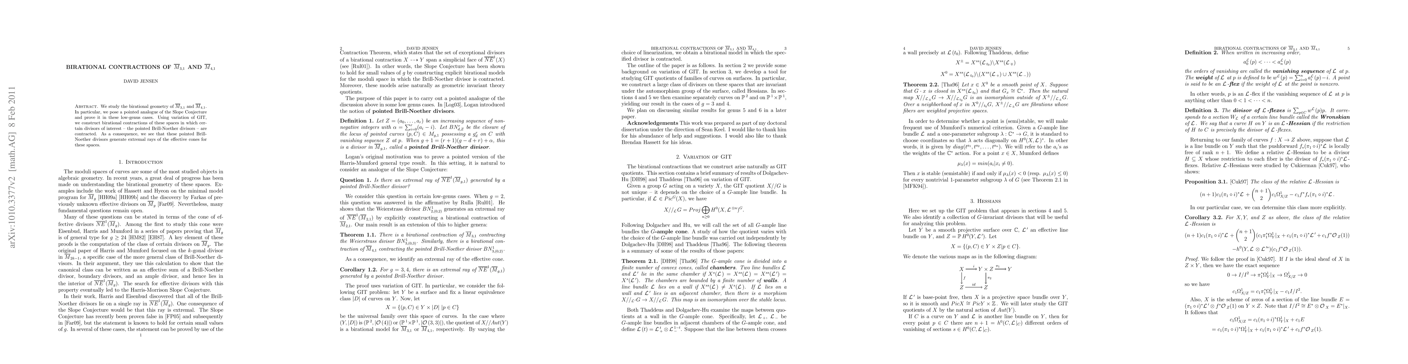 Researchers study birational geometry of $ar{M}_{3,1}$ and $ar{M}_{4,1}$ spaces, proving a pointed analogue of the Slope Conjecture in these cases and finding that certain divisors generate extremal rays in their effective cones.