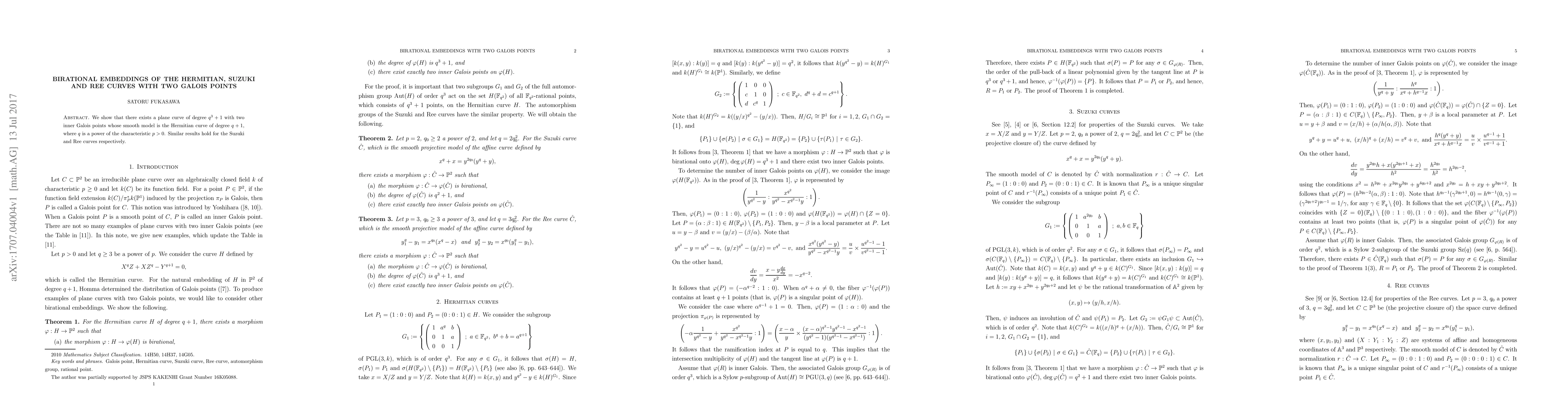 Researchers find plane curves with specific properties, similar to the Hermitian curve, that have two Galois points, applicable to degrees of $q^3+1$ and related Suzuki and Ree curves.