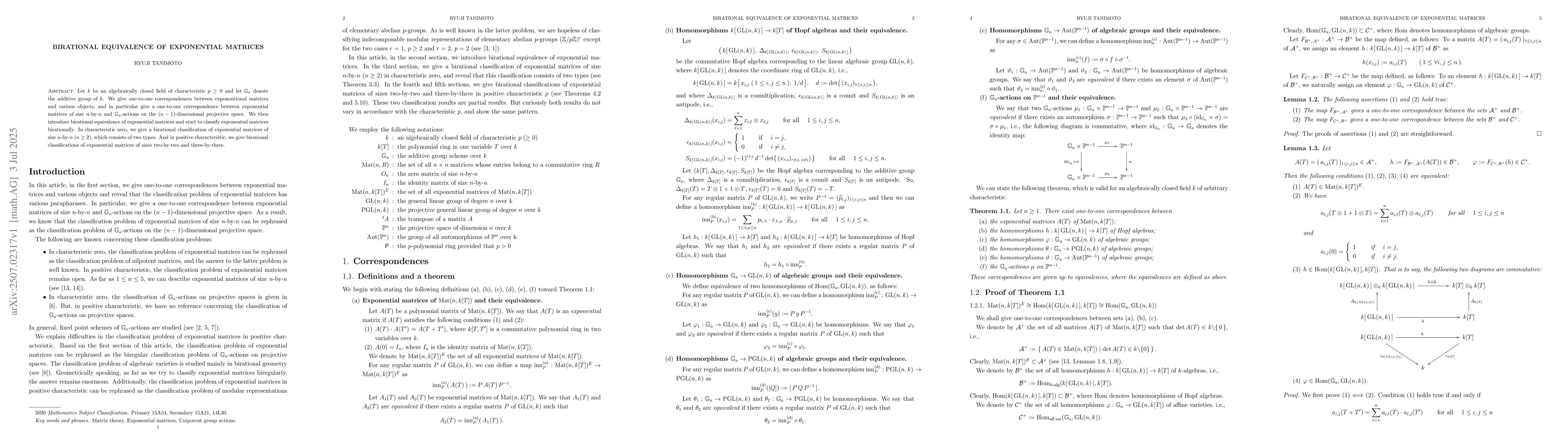 This work is novel because it provides a new approach to classifying exponential matrices using birational equivalence, and has potential applications in various areas of mathematics and physics.