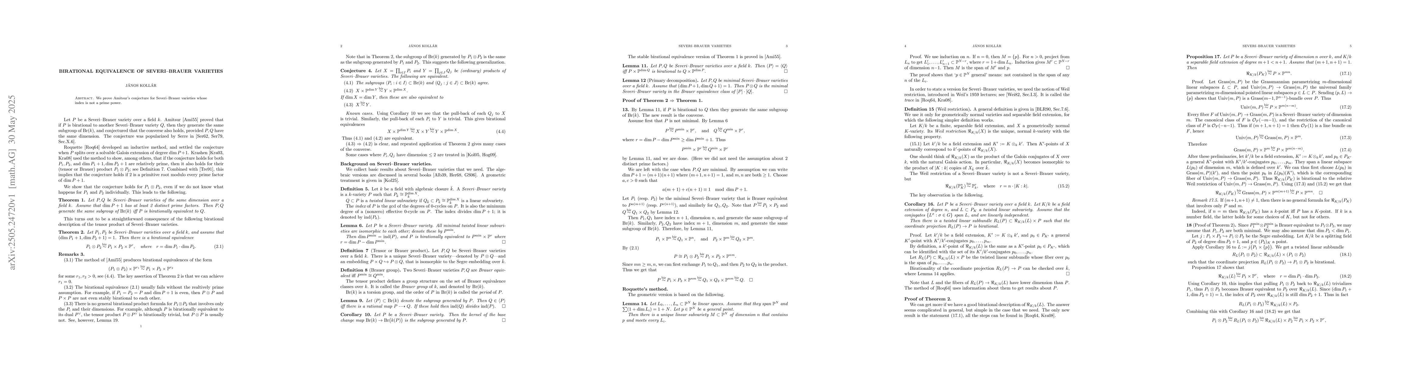 Researchers prove a key conjecture about Severi-Brauer varieties for certain cases, shedding light on their birational equivalence properties. The breakthrough resolves Amitsur's conjecture for non-prime power-indexed varieties.