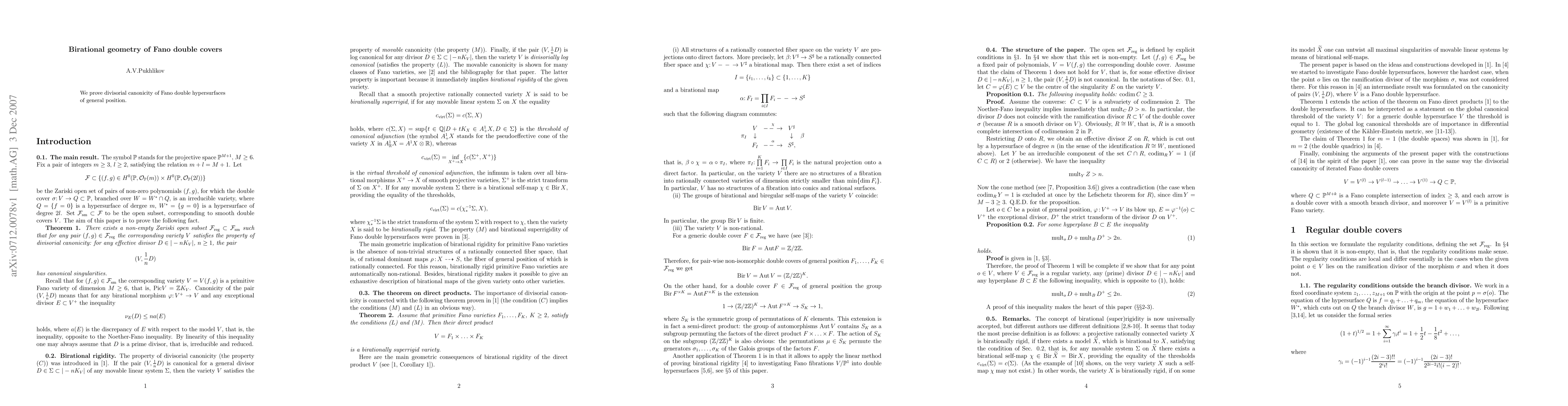 Researchers prove that Fano double hypersurfaces of general position have divisorial canonicity, a property related to their geometric structure and behavior.