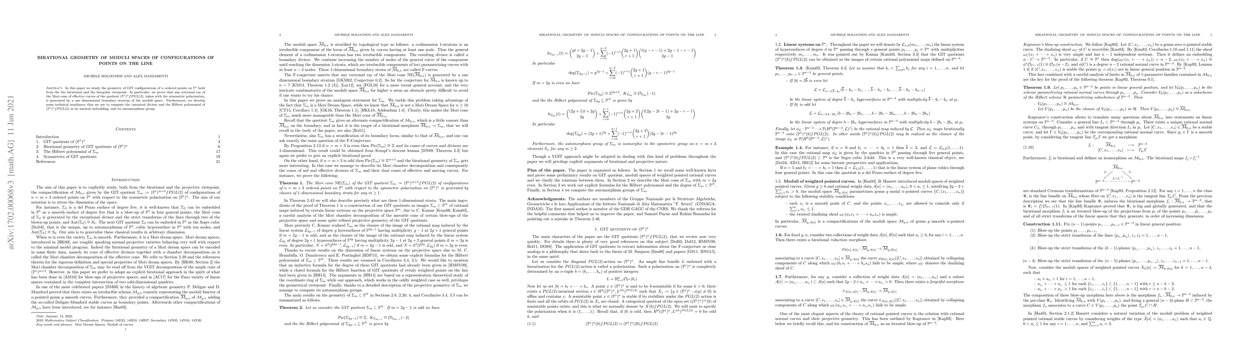 In this paper we study the geometry of GIT configurations of $n$ ordered points on $\mathbb{P}^1$ both from the the birational and the biregular viewpoint. In particular, we prove that any extremal ray of the Mori cone of effective curves of the quotient $(\mathbb{P}^1)^n//PGL(2)$, taken with the symmetric polarization, is generated by a one dimensional boundary stratum of the moduli space. Furthermore, we develop some technical machinery that we use to compute the canonical divisor and the Hilbert polynomial of $(\mathbb{P}^1)^n//PGL(2)$ in its natural embedding, and its group of automorphisms.