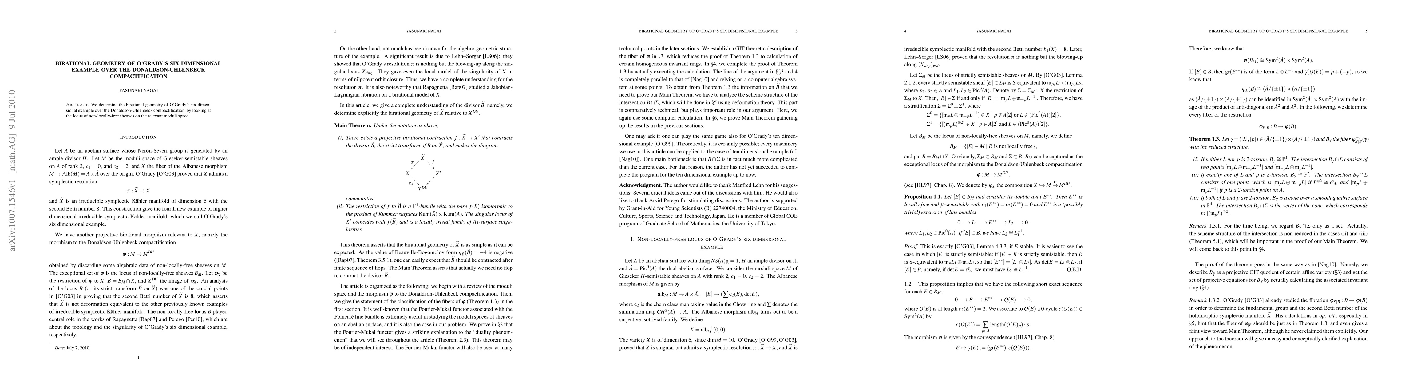 This paper determines the birational geometry of O'Grady's six-dimensional example within the Donaldson-Uhlenbeck compactification by analyzing the locus of non-locally-free sheaves on the associated moduli space. The findings provide insights into the structure and properties of this complex geometric object.