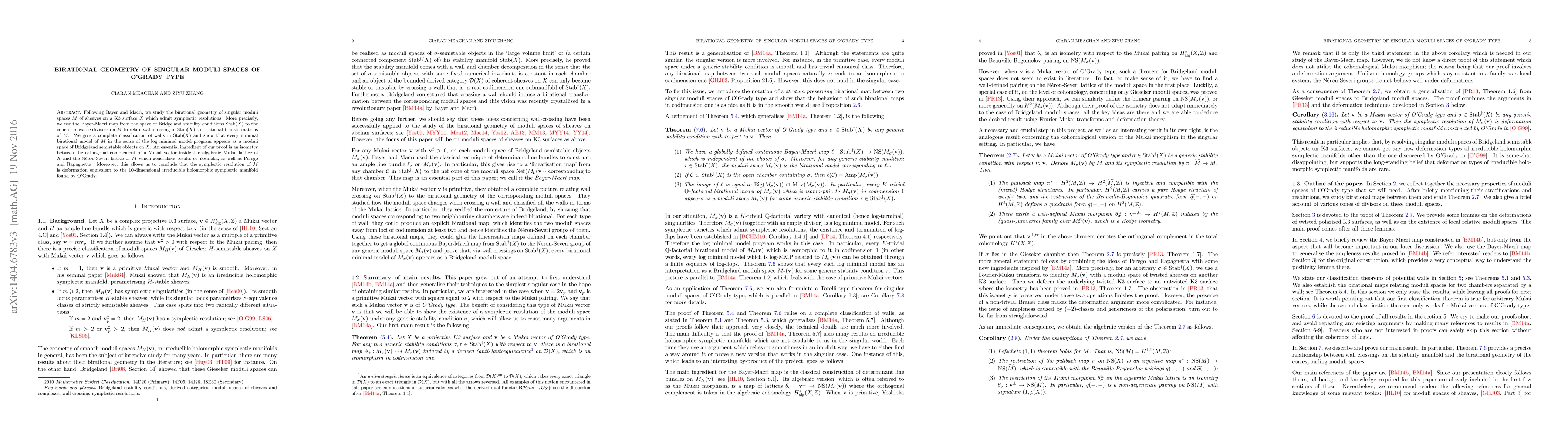 This paper classifies the birational geometry of singular moduli spaces $M$ of sheaves on K3 surfaces $X$ with symplectic resolutions, showing that every birational model of $M$ arises from moduli spaces of Bridgeland semistable objects on $X$. It establishes an isometry between the Néron-Severi lattice of $M$ and the orthogonal complement of a Mukai vector, confirming the deformation equivalence of the symplectic resolution of $M$ to O'Grady's 10-dimensional manifold.