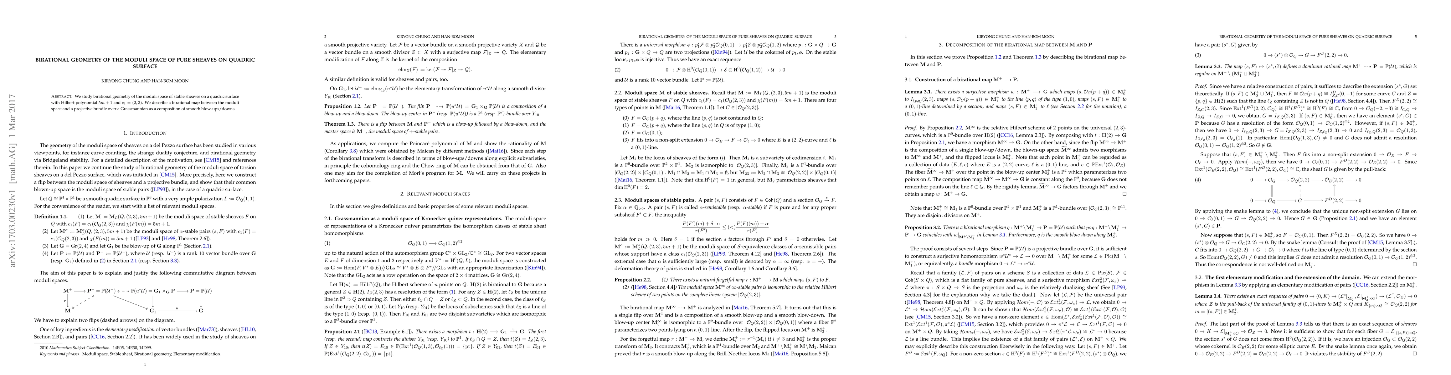 This paper investigates the birational geometry of the moduli space for stable sheaves on a quadric surface with specified Hilbert polynomial and first Chern class. It reveals a birational map between this moduli space and a projective bundle over a Grassmannian, achieved through a series of smooth blow-ups and blow-downs.
