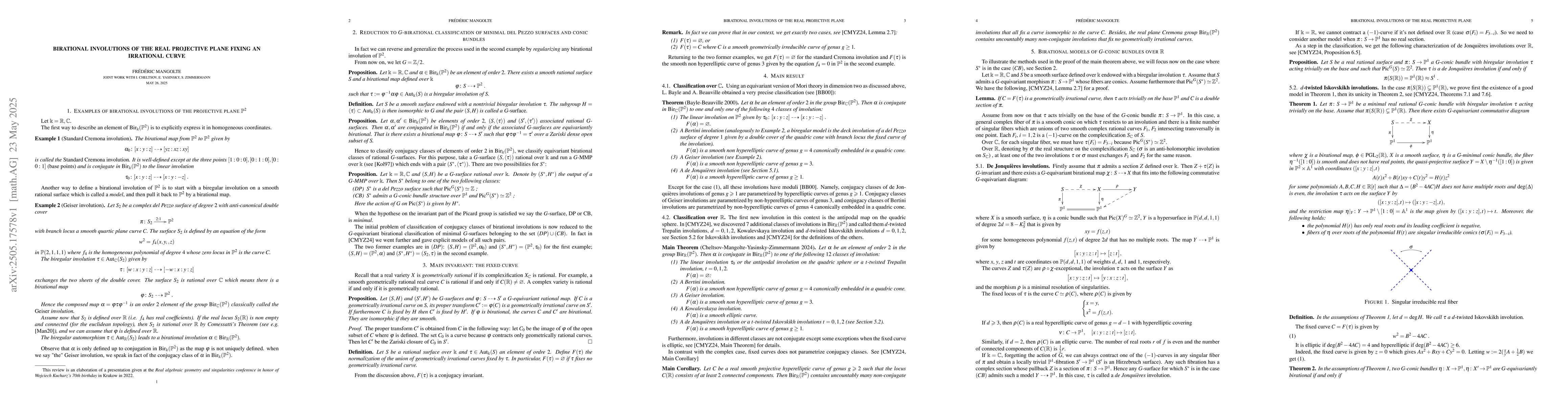 The paper provides a comprehensive classification and analysis of birational involutions on the real projective plane fixing an irrational curve, enriching the theoretical framework of real algebraic geometry.