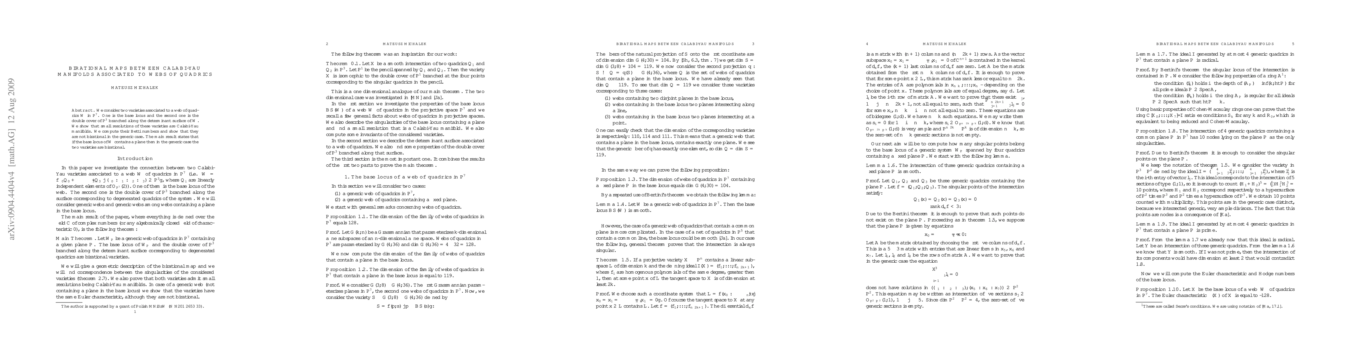 Summary: This paper investigates two varieties linked to a web of quadrics in projective space, proving that their small resolutions yield Calabi-Yau manifolds with computed Betti numbers. It concludes that these varieties are not birational generally, but become birational if the base locus of the web includes a plane.
