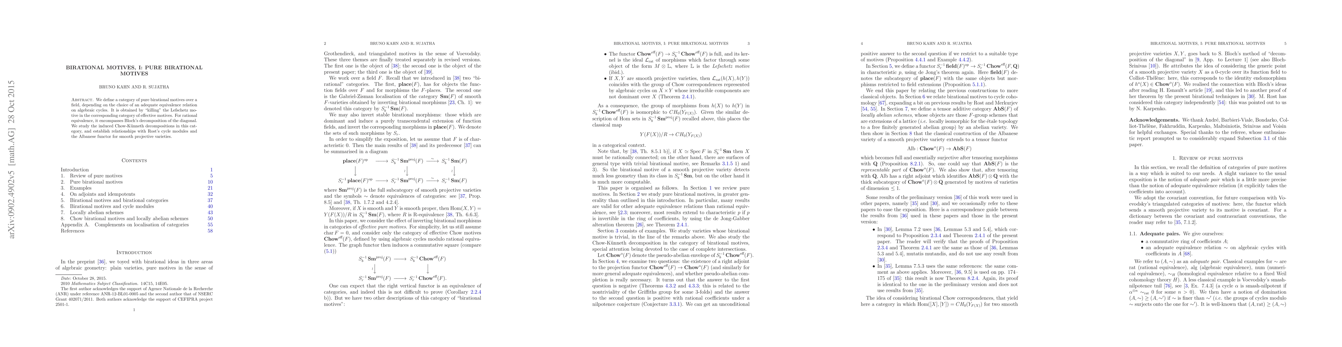 This paper introduces a category of pure birational motives by "killing" the Lefschetz motive within effective motives, establishing relationships with Rost's cycle modules and the Albanese functor for smooth projective varieties, and studying the resulting Chow-Künneth decompositions. The work builds on Bloch's decomposition of the diagonal for rational equivalence.