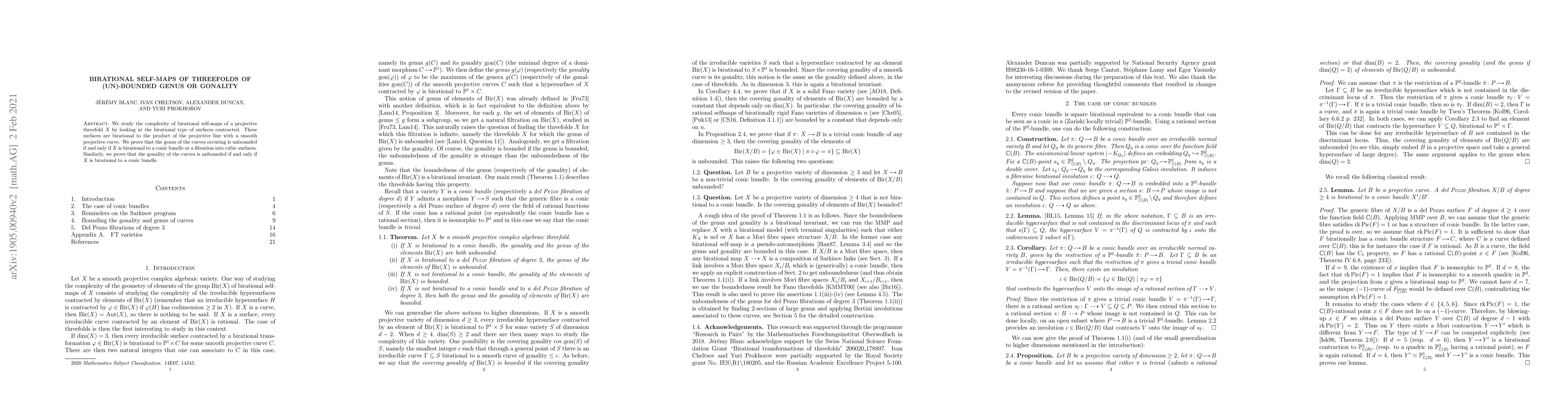 This paper investigates the complexity of birational self-maps of a projective threefold $X$ by analyzing the birational type of contracted surfaces. It demonstrates that unbounded genus in these surfaces occurs if and only if $X$ is birational to a conic bundle or cubic surface fibration, while unbounded gonality occurs if $X$ is birational to a conic bundle.