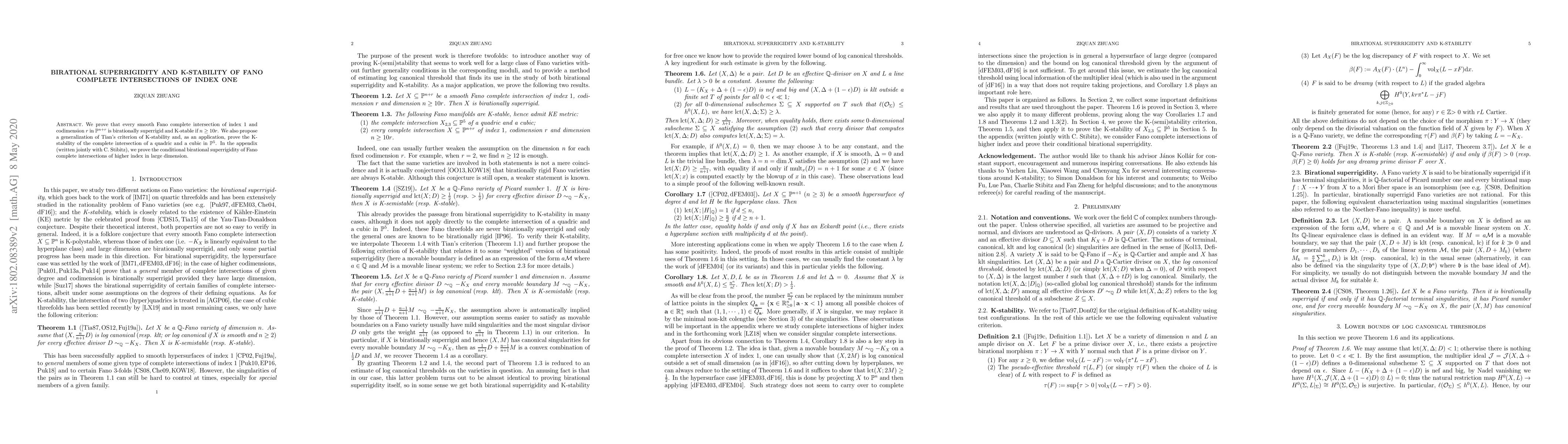 This paper proves the birational superrigidity and K-stability of smooth Fano complete intersections of index one under certain dimensional conditions. It also generalizes Tian's K-stability criterion and applies it to the intersection of a quadric and a cubic in $\mathbb{P}^5$. An appendix co-authored with Charlie Stibitz discusses conditional birational superrigidity for higher index Fano complete intersections in large dimensions.