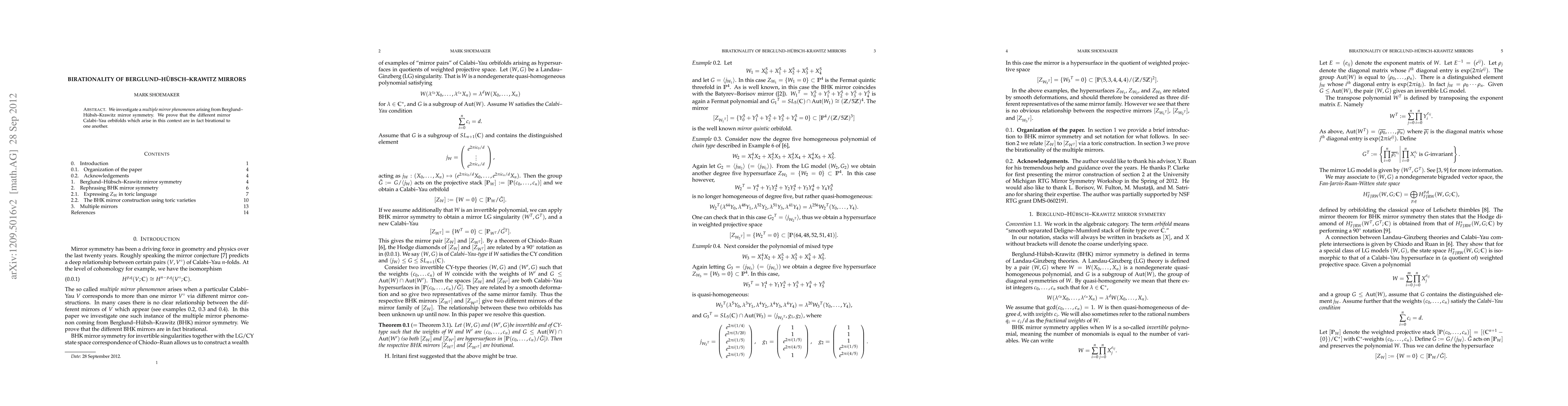 This paper demonstrates that various Calabi-Yau orbifolds within the framework of Berglund-Hübsch-Krawitz mirror symmetry are birationally equivalent, revealing a multiple mirror phenomenon. The authors establish the birationality of these distinct mirror Calabi-Yau orbifolds.
