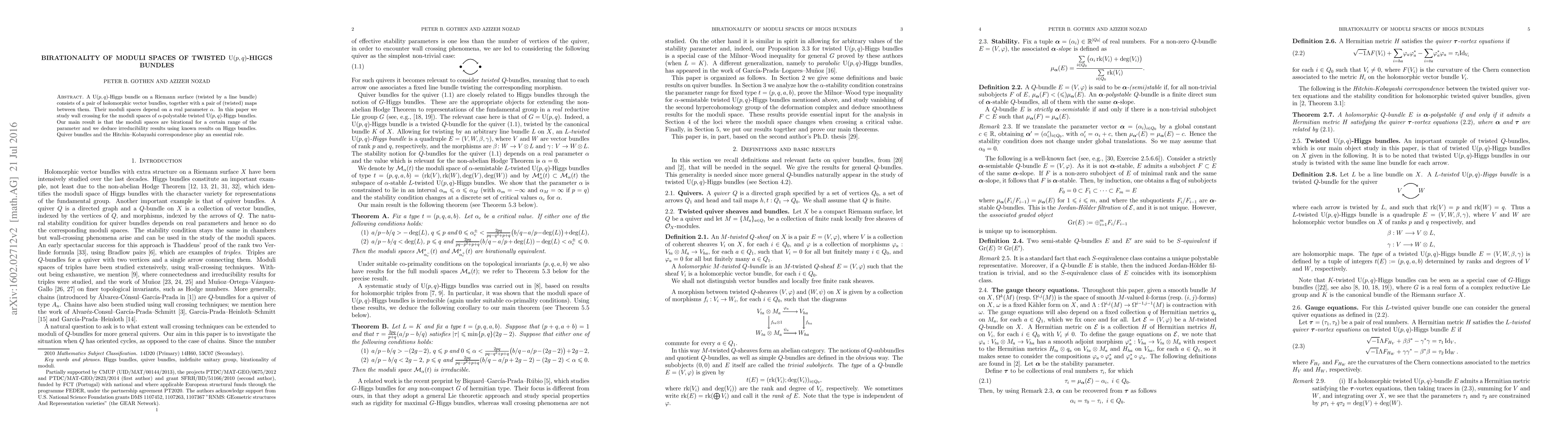 This paper examines the moduli spaces of $\mathrm{U}(p,q)$-Higgs bundles on Riemann surfaces, twisted by a line bundle, and studies their birationality across various parameters. The authors demonstrate that these moduli spaces are birational within a specific parameter range and utilize quiver bundles and the Hitchin-Kobayashi correspondence to deduce irreducibility results.