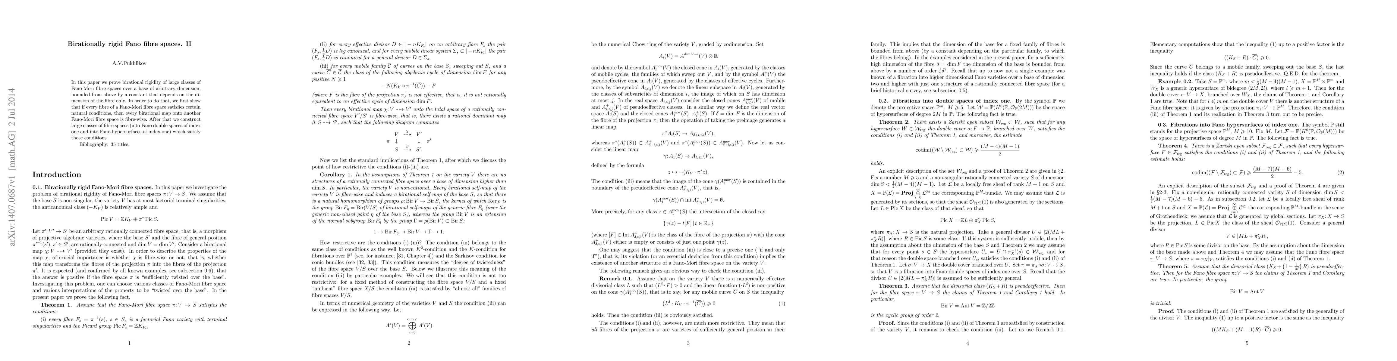 In this paper we prove birational rigidity of large classes of Fano-Mori fibre spaces over a base of arbitrary dimension, bounded from above by a constant that depends on the dimension of the fibre only. In order to do that, we first show that if every fibre of a Fano-Mori fibre space satisfies certain natural conditions, then every birational map onto another Fano-Mori fibre space is fibre-wise. After that we construct large classes of fibre spaces (into Fano double spaces of index one and into Fano hypersurfaces of index one) which satisfy those conditions. The paper is a follow up of my previous work: Pukhlikov A.V., Birationally rigid Fano fibrations, Izvestiya: Mathematics {\bf 64} (2000), No. 3, 563-581.