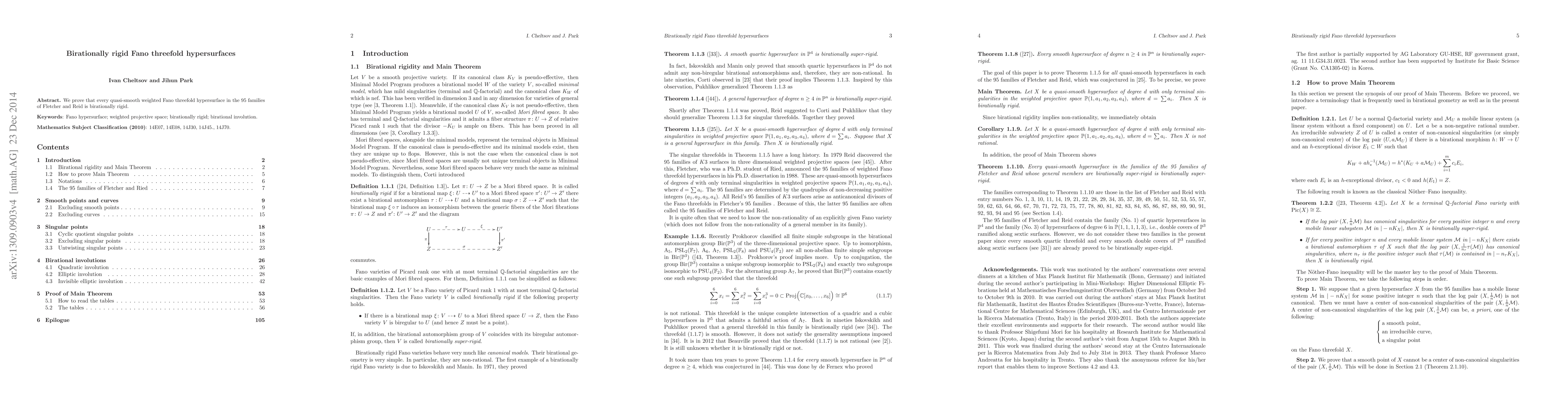 The paper employs algebraic geometry techniques, specifically focusing on the birational rigidity of Fano threefold hypersurfaces within a family of weighted projective spaces.