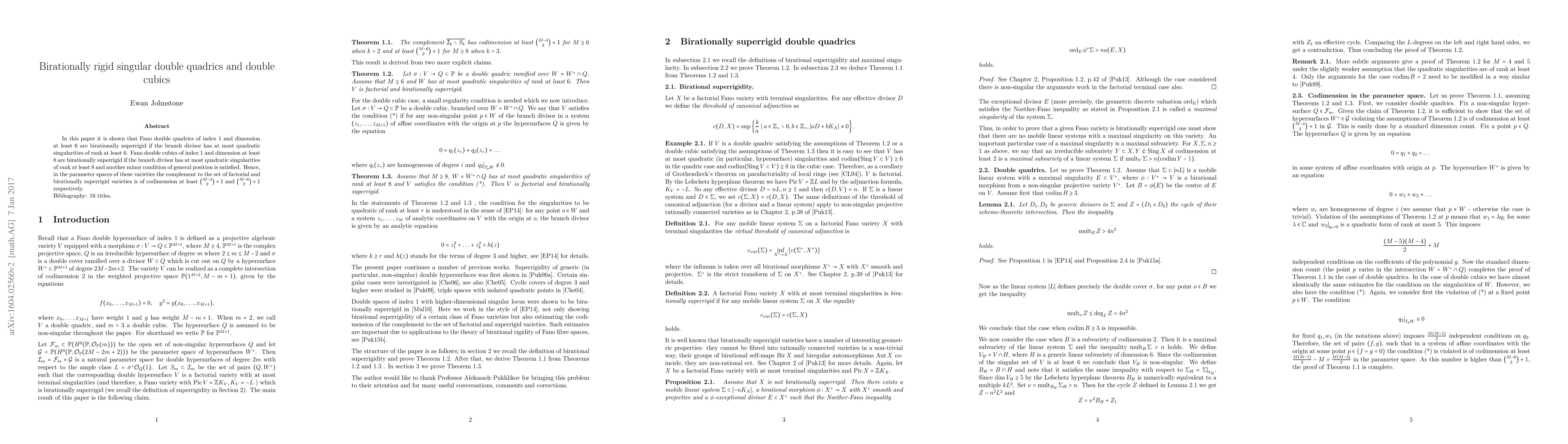 In this paper a large class of Fano double quadrics and cubics are shown to be factorial and birationally superrigid, in particular they admit no non-trivial structure of a fibration with rationally connected fibres and are therefore non-rational. This is shown using the "Method of maximal singularities" of Iskovskikh and Manin, expanded upon by Pukhlikov. In addition, an estimate of the codimension of the set of such varieties is calculated.