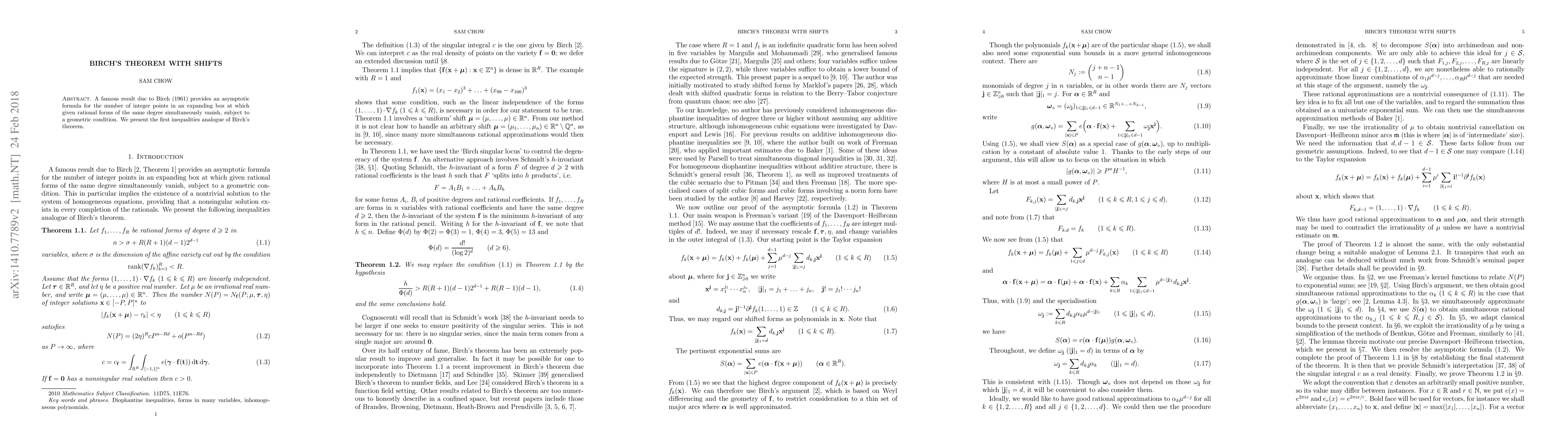 Let $f_1, ..., f_R$ be rational forms of degree $d \ge 2$ in $n > \sigma + R(R+1)(d-1)2^{d-1}$ variables, where $\sigma$ is the dimension of the affine variety cut out by the condition $\mathrm{rank}(\nabla f_k)_{k=1}^R < R$. Assume that $\mathbf{f} = \mathbf{0}$ has a nonsingular real solution, and that the forms $(1,...,1) \cdot \nabla f_k$ are linearly independent. Let $\boldsymbol{\tau} \in \mathbb{R}^R$, let $\mu$ be an irrational real number, and let $\eta$ be a positive real number. We consider the values taken by $\mathbf{f}(x_1 + \mu, ..., x_n + \mu)$ for integers $x_1, ..., x_n$. We show that these values are dense in $\mathbb{R}^R$, and prove an asymptotic formula for the number of integer solutions $\mathbf{x} \in [-P,P]^n$ to the system of inequalities $|f_k(x_1 + \mu, ..., x_n + \mu) - \tau_k| < \eta$ ($1 \le k\le R$).