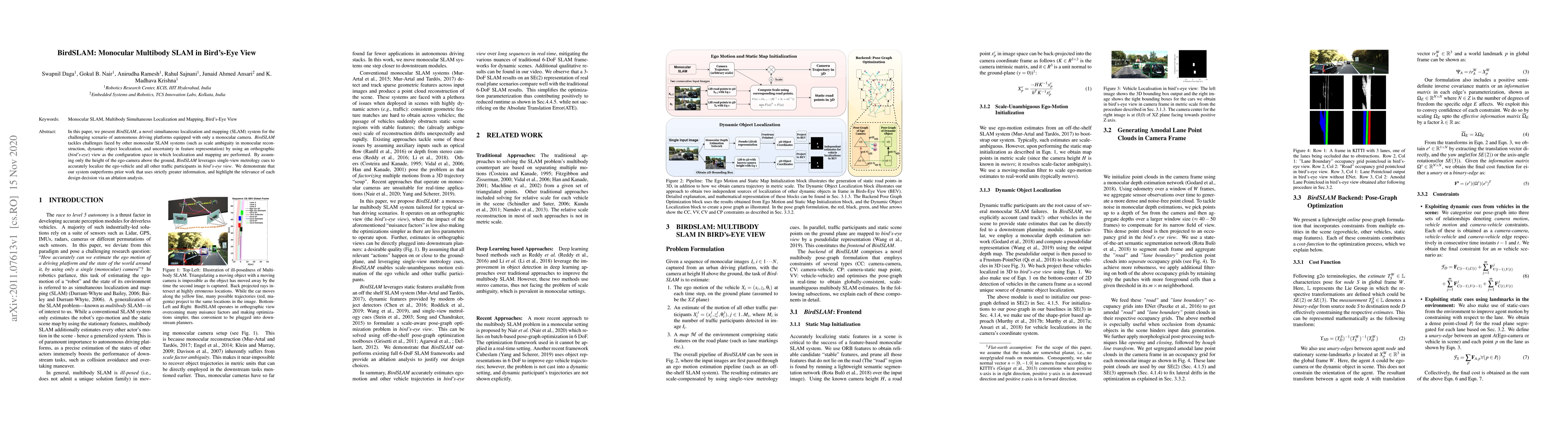 The paper introduces BirdSLAM, a novel monocular multibody SLAM system using a bird's-eye view for localization and mapping, addressing challenges like scale ambiguity, dynamic object localization, and uncertainty in feature representation.