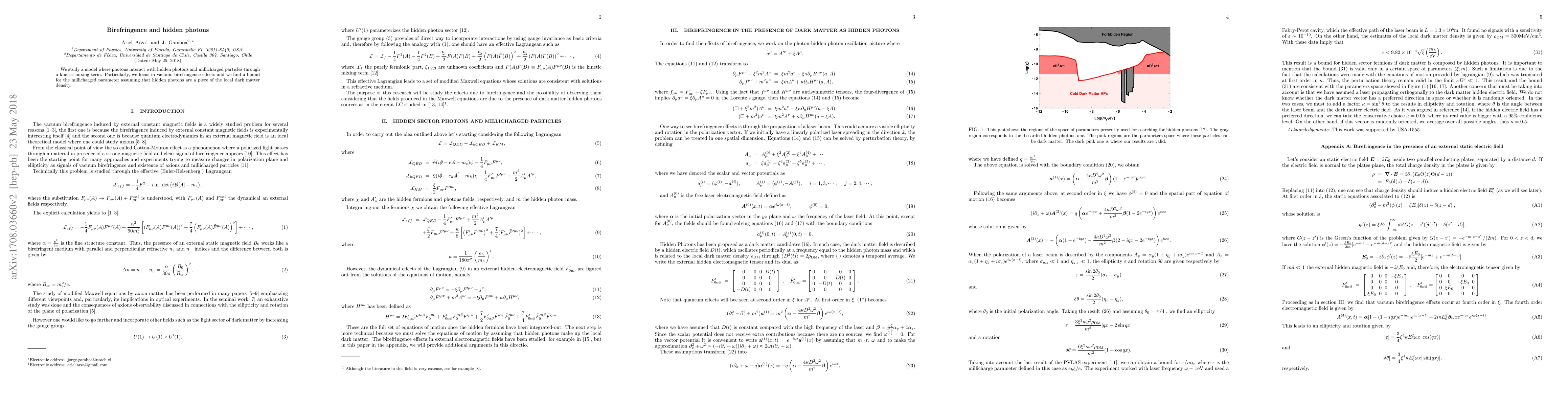 We study a model where photons interact with hidden photons and millicharged particles through a kinetic mixing term. Particularly, we focus in vacuum birefringence effects and we find a bound for the millicharged parameter assuming that hidden photons are a piece of the local dark matter density