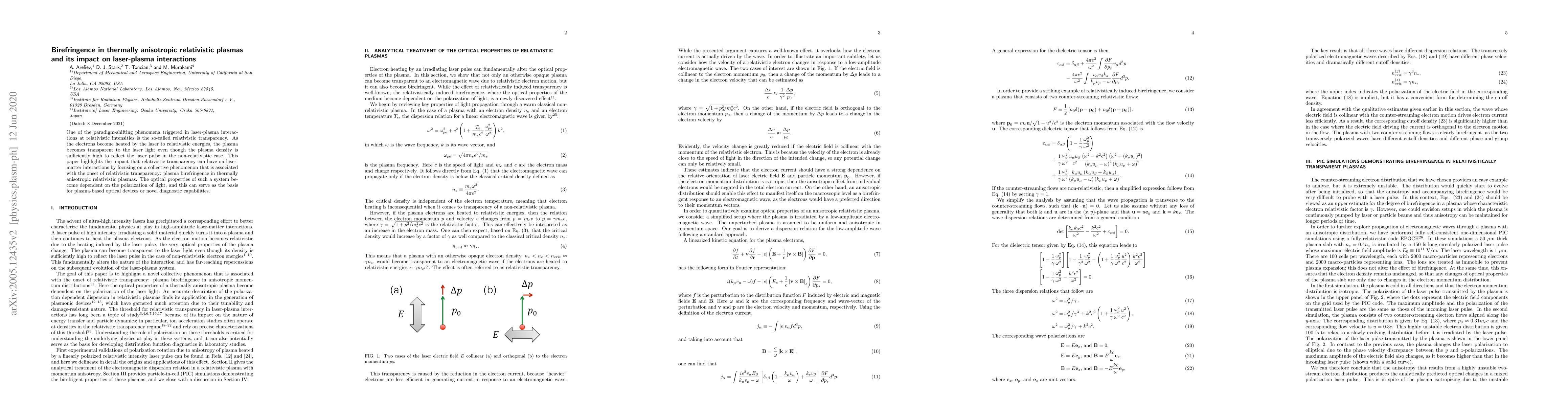 This paper investigates the phenomenon of relativistic transparency in laser-plasma interactions, emphasizing plasma birefringence in thermally anisotropic relativistic plasmas. It explores how the optical properties of such plasmas depend on the polarization of light, potentially enabling new plasma-based optical devices and diagnostics.