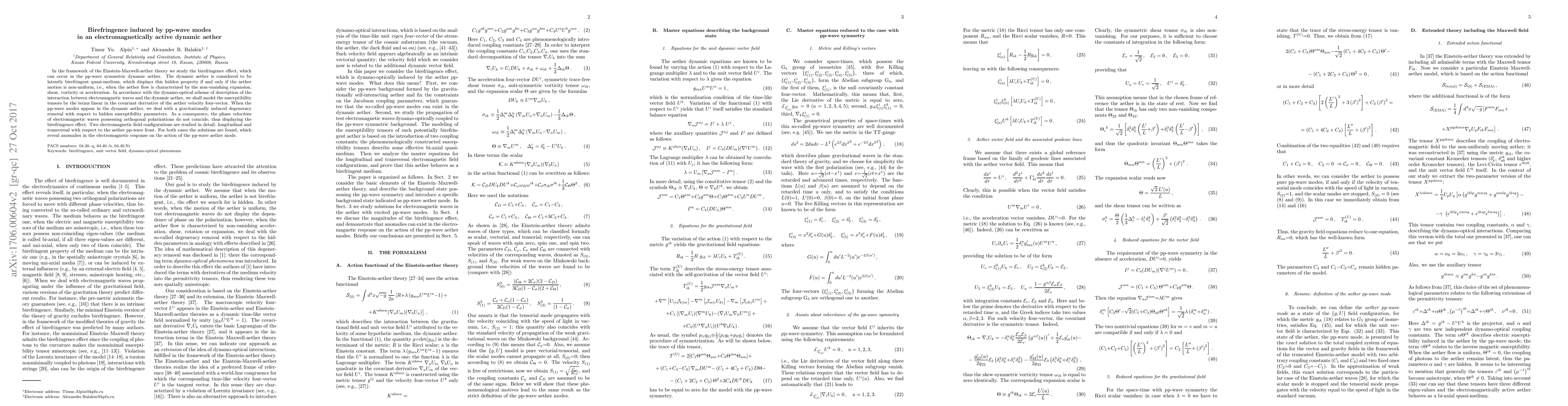 This paper investigates birefringence in an electromagnetically active dynamic aether under pp-wave modes, revealing that non-uniform aether motion induces a hidden birefringent property. The study finds that pp-wave modes lead to distinct phase velocities for orthogonally polarized electromagnetic waves, demonstrating the birefringence effect.