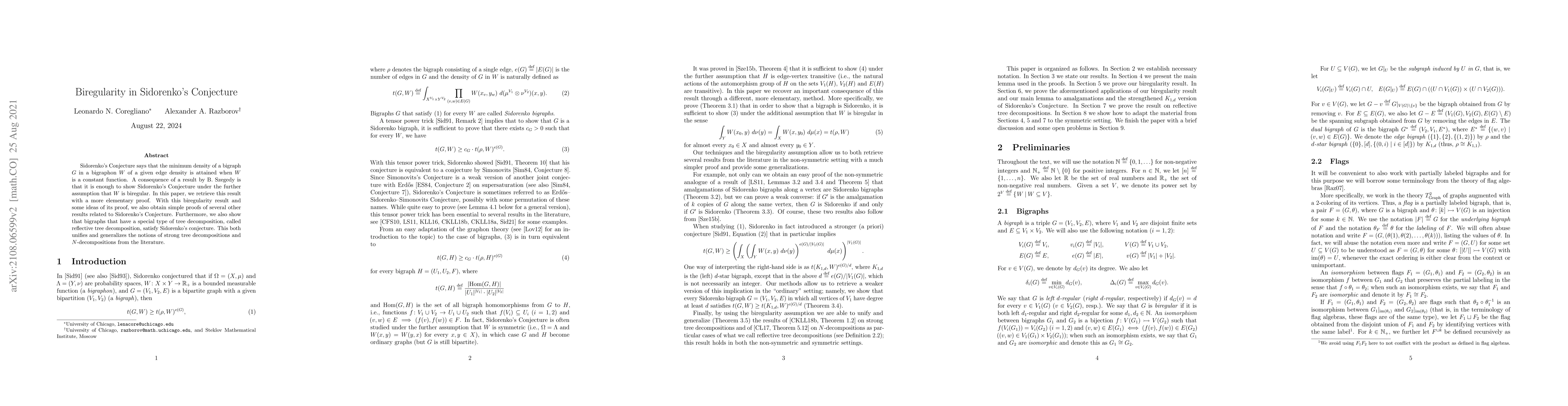 This paper provides an elementary proof for the biregularity assumption in Sidorenko's Conjecture and uses it to derive several related results. It also demonstrates that bigraphs with a reflective tree decomposition satisfy the conjecture, unifying and extending previous notions.