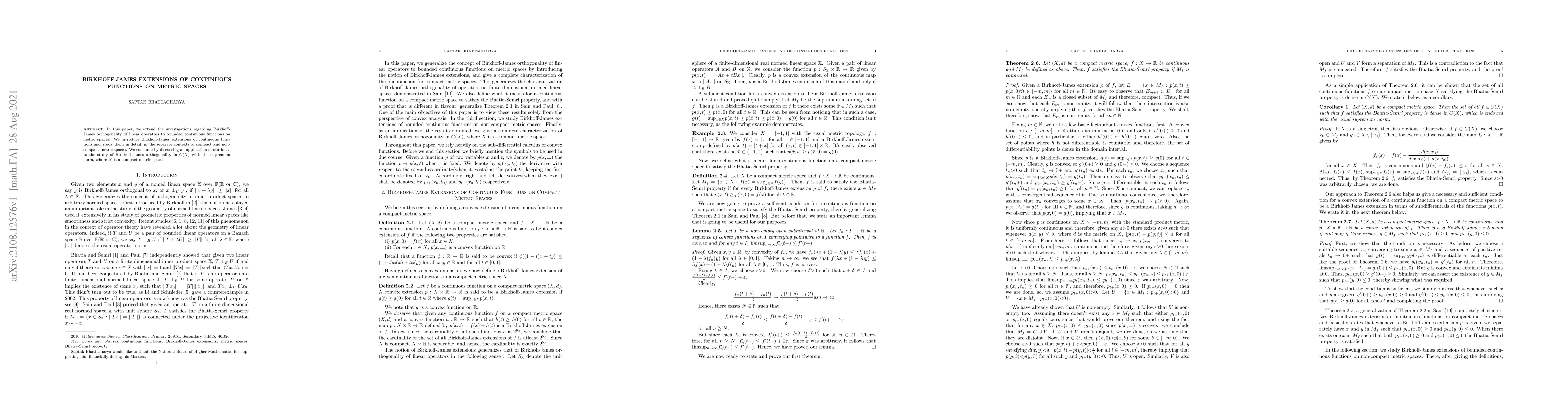 The research extends Birkhoff-James orthogonality to bounded continuous functions on metric spaces, introducing Birkhoff-James extensions and analyzing them in compact and non-compact contexts.