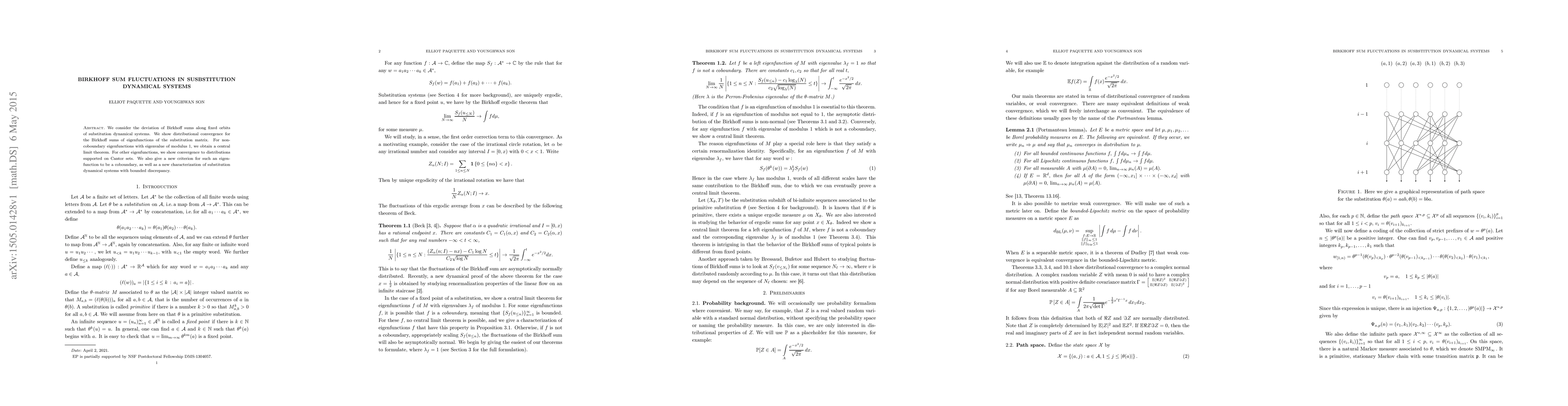 This paper investigates fluctuations in Birkhoff sums for substitution dynamical systems, revealing distributional convergence for eigenfunctions of the substitution matrix. It establishes a central limit theorem for noncoboundary eigenfunctions with unit eigenvalue modulus and convergence to Cantor set distributions for others, along with new criteria for coboundary eigenfunctions and characterizations of systems with bounded discrepancy.