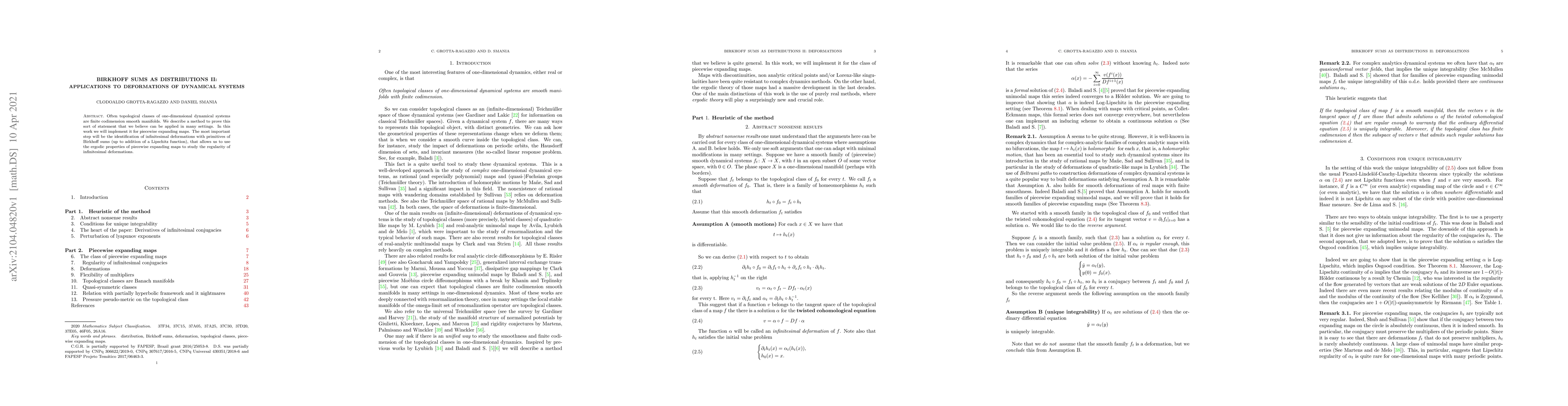 This paper presents a method to demonstrate that topological classes of one-dimensional dynamical systems form finite codimension smooth manifolds, applying it to piecewise expanding maps. It identifies infinitesimal deformations with primitives of Birkhoff sums, leveraging ergodic properties to study deformation regularity.