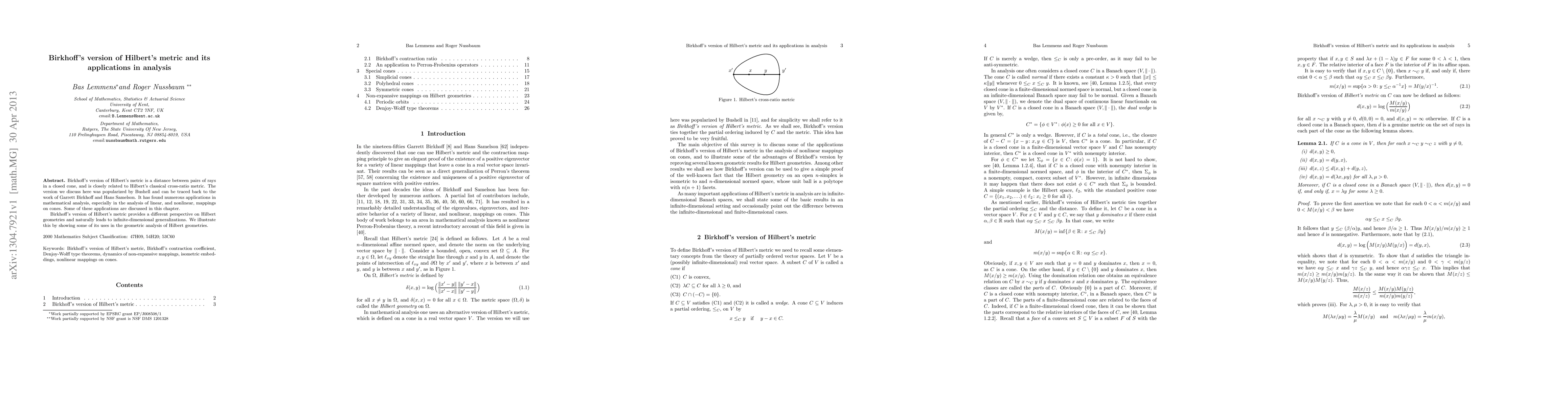 This is a survey article concerning applications of Hilbert's metric in the analysis and dynamics of linear and nonlinear mappings on cones. It will appear as a chapter in the "Handbook of Hilbert geometry", ed. G. Besson, A. Papadopoulos and M. Troyanov, European Mathematical Society Publishing House, Z\"urich.